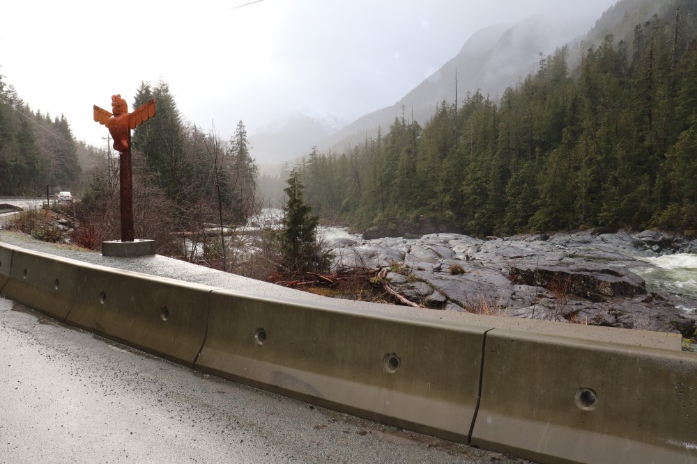 It was about ten years ago when Wenstob and his brother created the welcome sign that stands on top of Sutton Pass. Now, there is a cedar Thunderbird figure watching over Kennedy River at the Wally Creek lookout located 75 kilometres from Tofino.