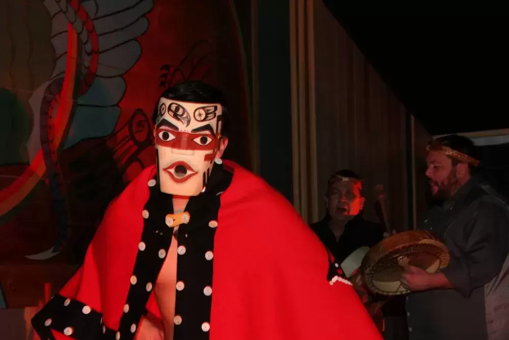 In addition to the Salmon, Bear, and Guardian masks that were made by world renowned Tla-o-qui-aht carver Joe David, Wenstob and his family showcased three more masks accompanied by fun songs.