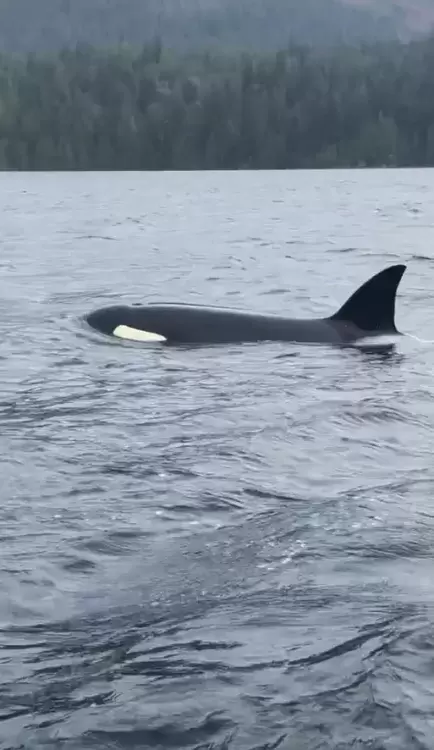 Sieber said he received a report from his friend who sighted the pod in Uchucklesaht Inlet only an hour later. The following day Chainsaw and his pod were spotted near Ahousaht.
