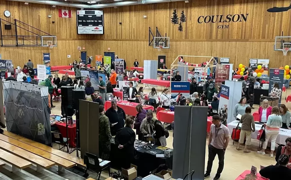 At 8:30 a.m. on Thursday April 27 the Alberni Athletic Hall was loud with the buzz of dozens of employers setting up their tables in hopes to reach new employees. Nuu-chah-nulth Employment and Training Program has partnered with Alberni Valley Employment Center/Work BC for the first time since the COVID-19 pandemic in setting up this career fair.