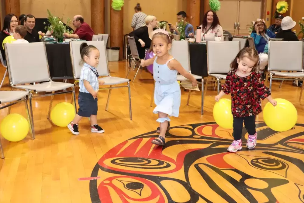 Toddlers gleefully played with bright yellow balloons while the adults socialized. PAFC Program Coordinator Darlene Leonew welcomed the crowd and invited representatives of both Hupacasath and Tseshaht to welcome everyone.