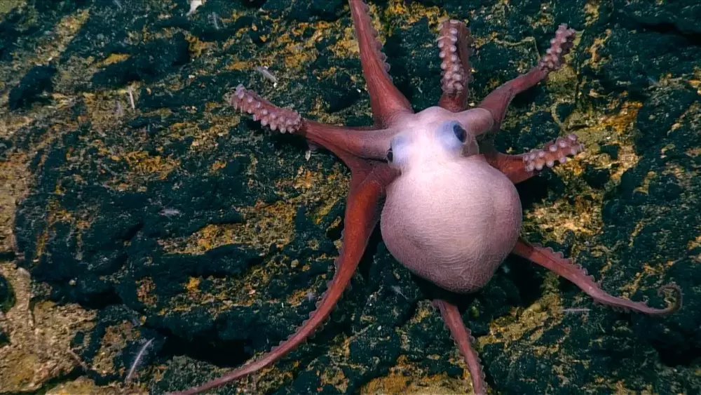 “It's a beautiful deep-sea octopus, very charismatic, purple, big black eyes,” said Du Preez. “[They] sit on their eggs, don't move, don't eat and just defend the eggs for a minimum of four and a half years.”
