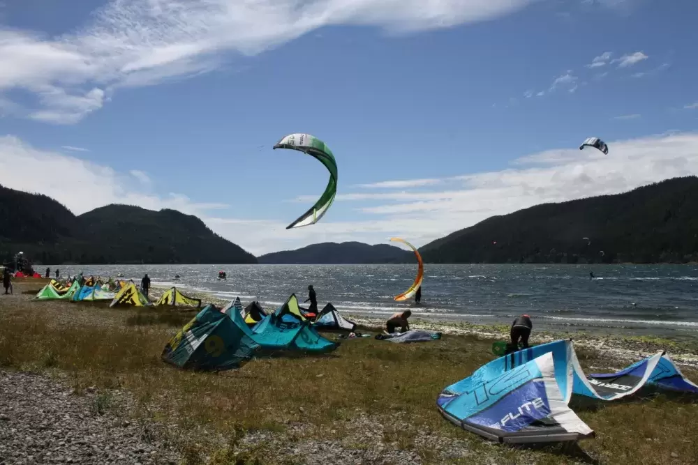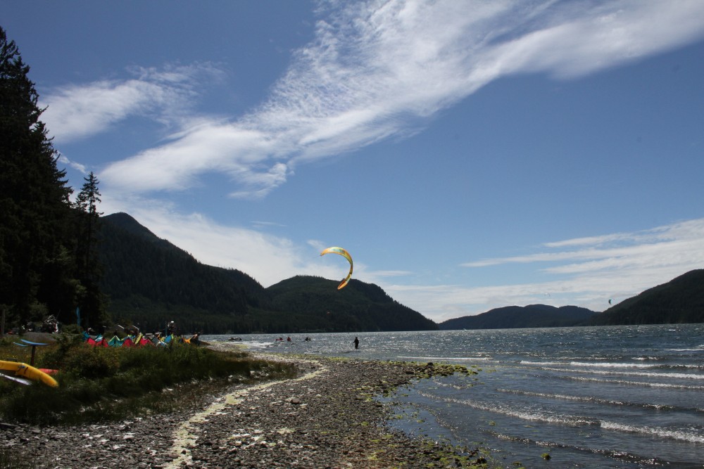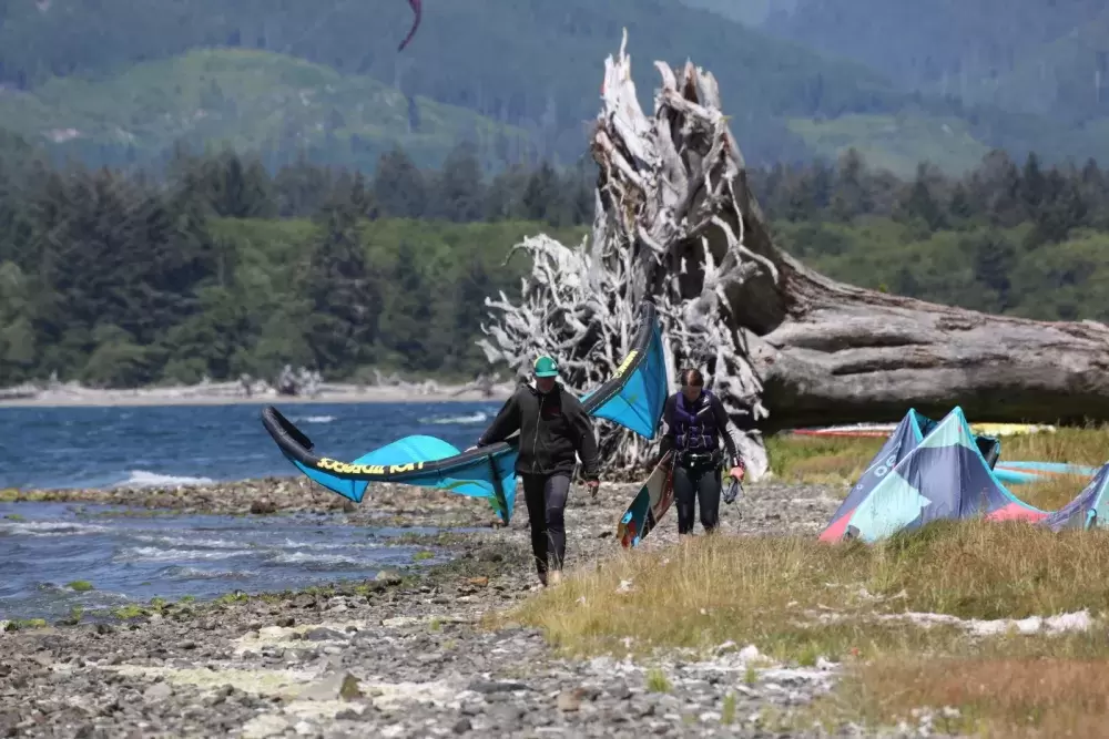 “Kiteboarders are still the majority of our clientele, although with the expanded area and new sites we are attracting more families who are not windsurfers or kiteboarders,” Cofsky said. “We are building six retreat cabins in the woods on the existing Ditidaht Private Lands. It has been a successful Job Creation/WorkBC and training project for local members.”