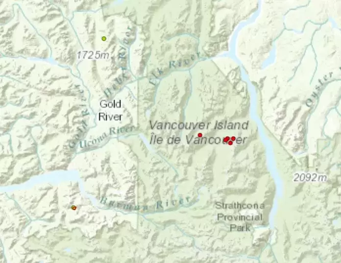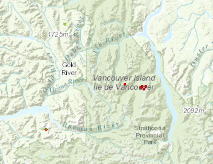 Jacklah River wildfire, another fire located five kilometers south of Muchalat Inlet, is also near the town of Gold River. It sparked on July 20, growing to 35 hectares and is currently under control.
