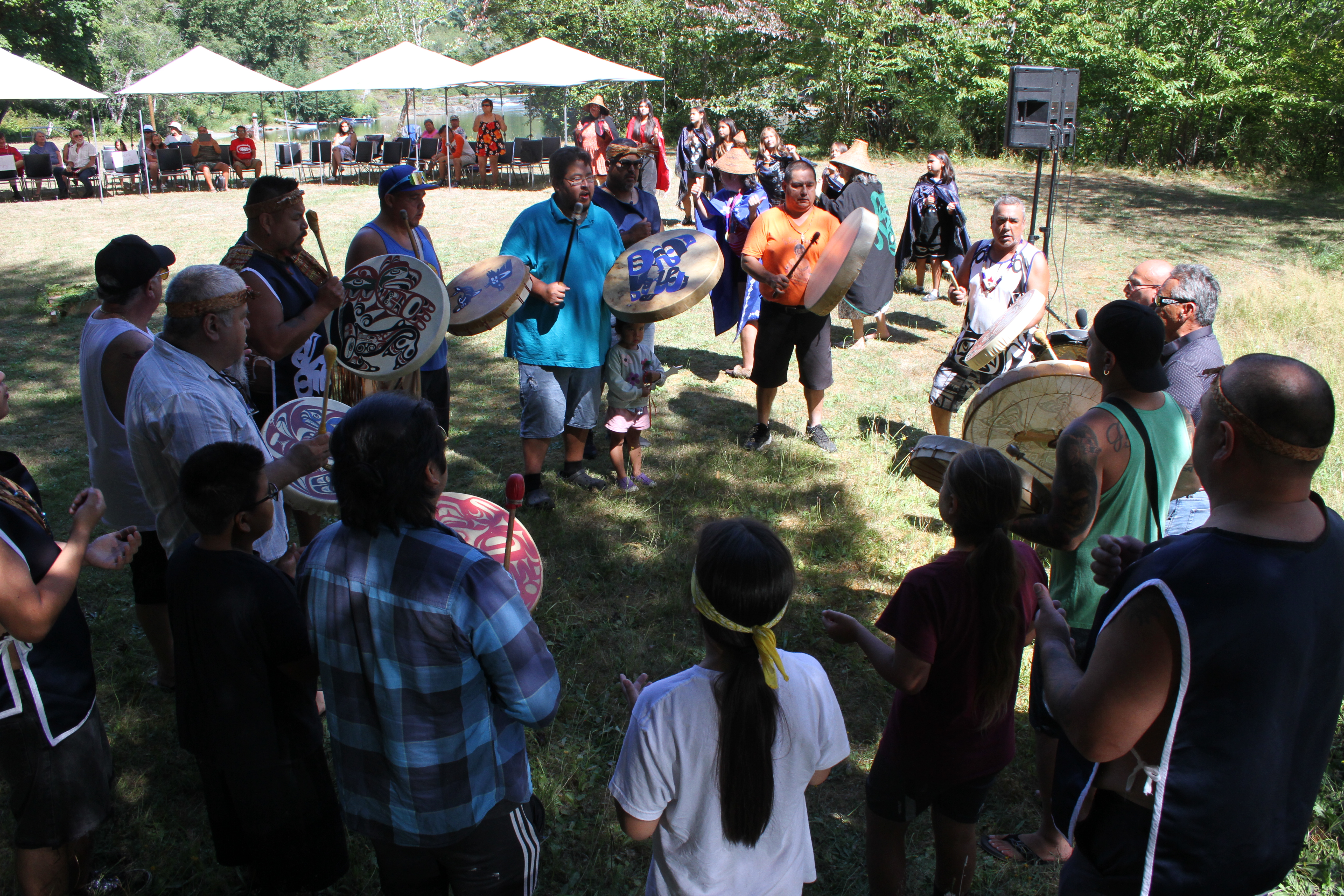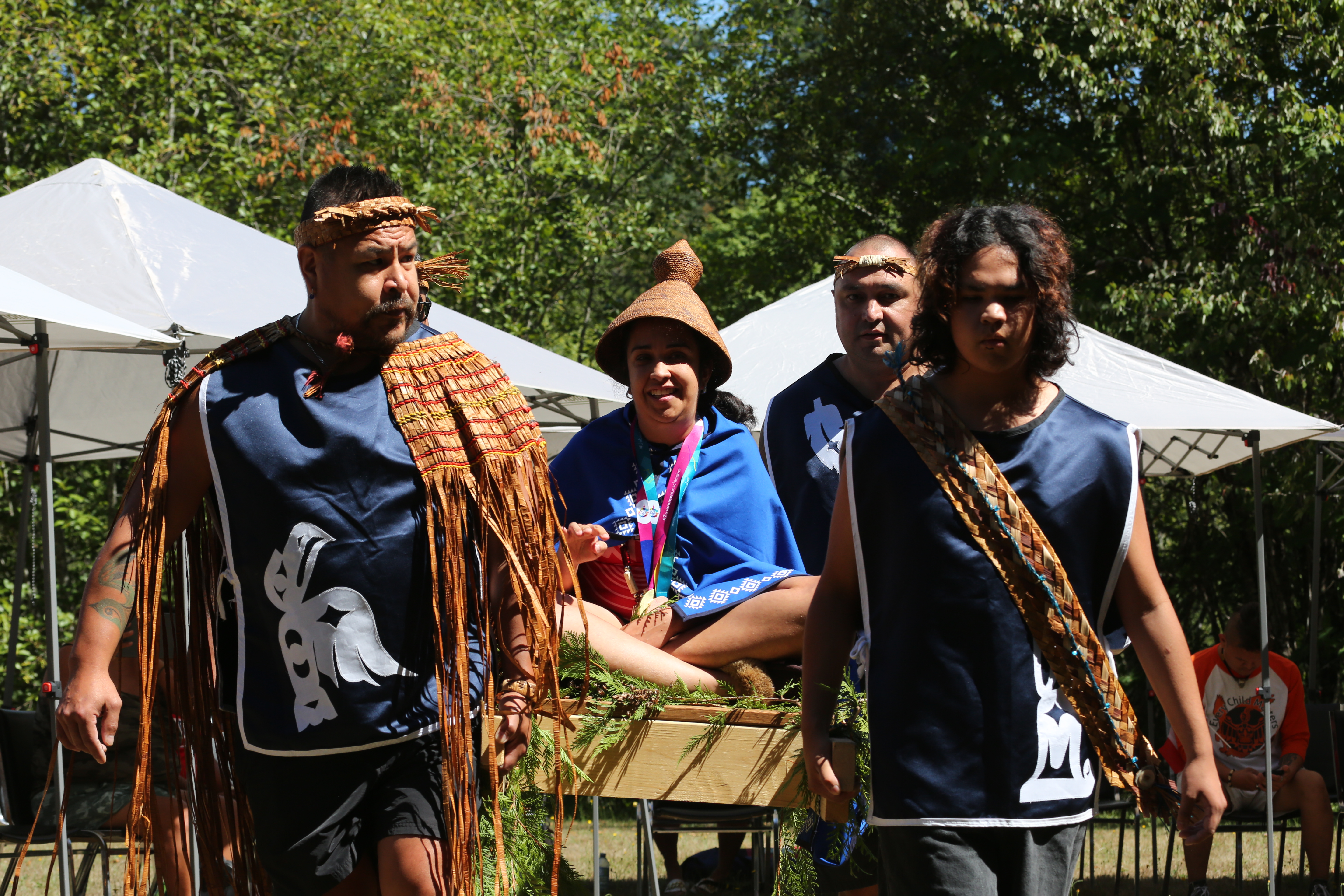 Fellow Tseshaht members began the gathering with singing and dancing, leading to Jolyn being carried on a platform by four men before those in attendance.