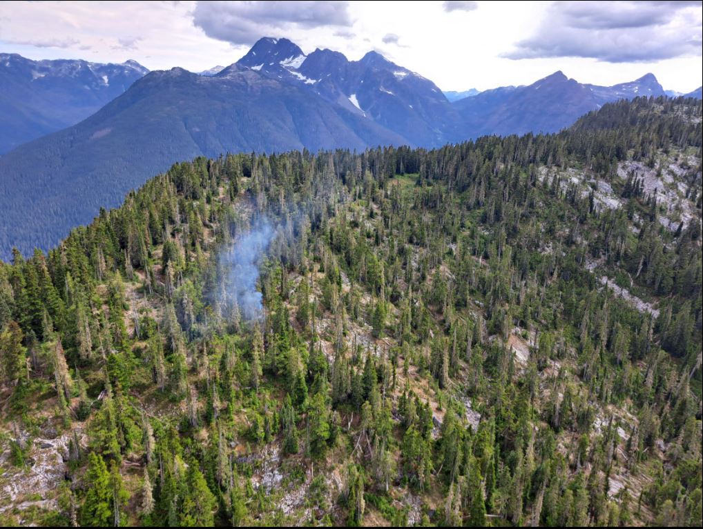 “This fire is being regularly monitored but not actively suppressed at this time as it does not pose a risk to public safety or infrastructure,” stated the wildfire service. “If the fire grows to a point where it begins to threaten values, targeted action will be taken. Responder safety is a key consideration in determining what action can be taken in the steep and mountainous terrain where this fire is burning.”