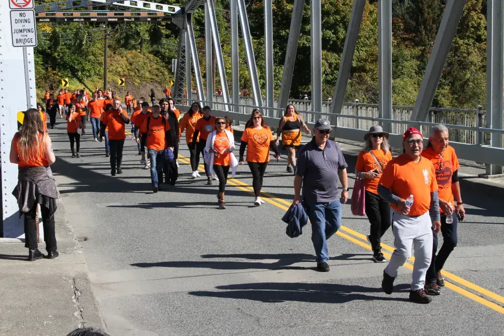 Well over 1,000 people participated in the Orange Shirt Day walk this year, which began at the Barclay Hotel at about 11 a.m., progressing down to the Victoria Quay and along River Road. The procession ended at Maht Mahs, where AIRS once stood. Speeches, food and cultural performances followed for those present, into the evening.