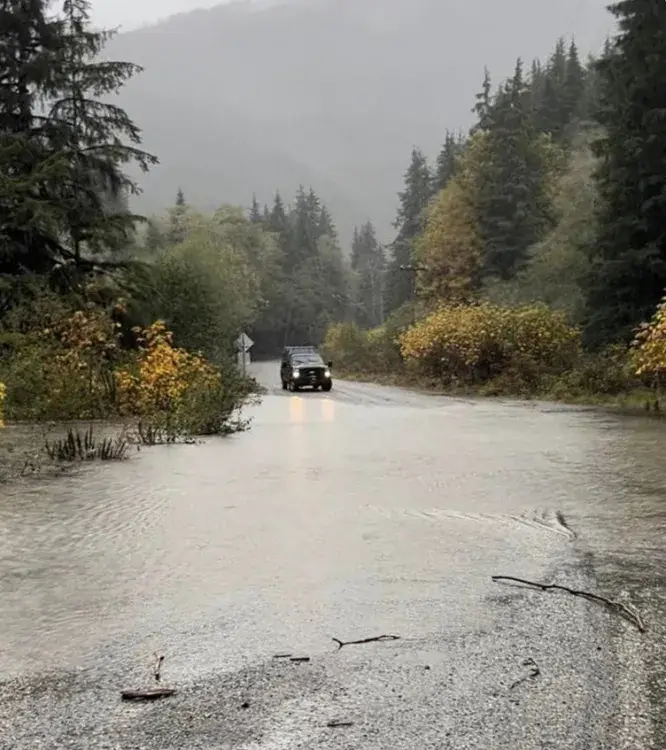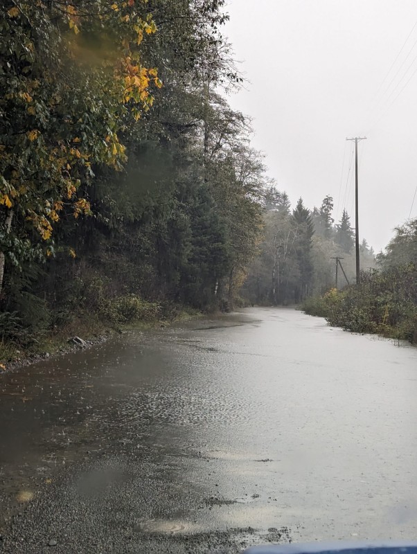 Over at Nitinaht, Brian Tate, a Ditidaht member, shared images of the flooded roadway just outside of his community.