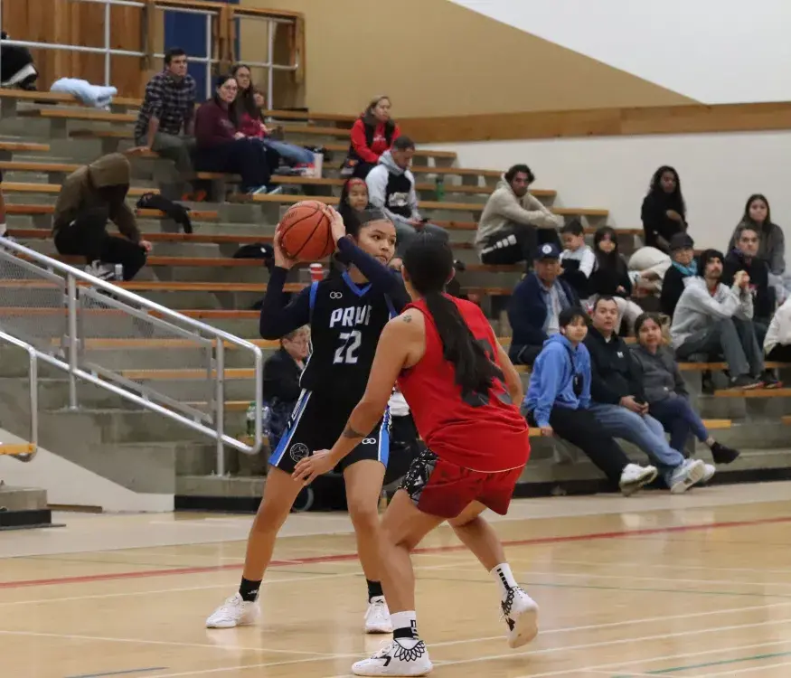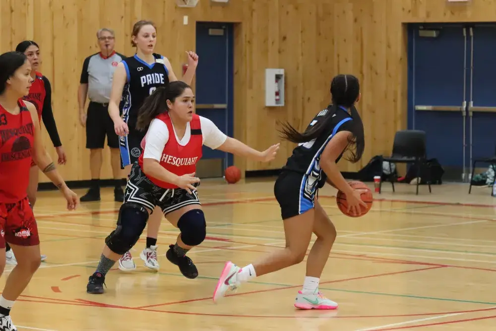Tseshaht Pride, a team of mainly under-17 youth, fought for first place against the Hesquiaht Descendants in the final game of the women’s division in AV Thunder’s basketball tournament, placing second overall.