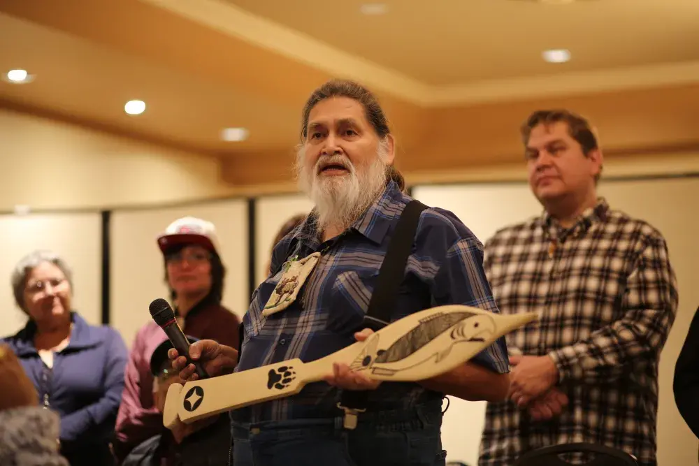 During the AGM Uchucklesaht Tyee Ha’wilth Clifford Charles reflected on how these childhood survival tactics led to leadership skills in adulthood.