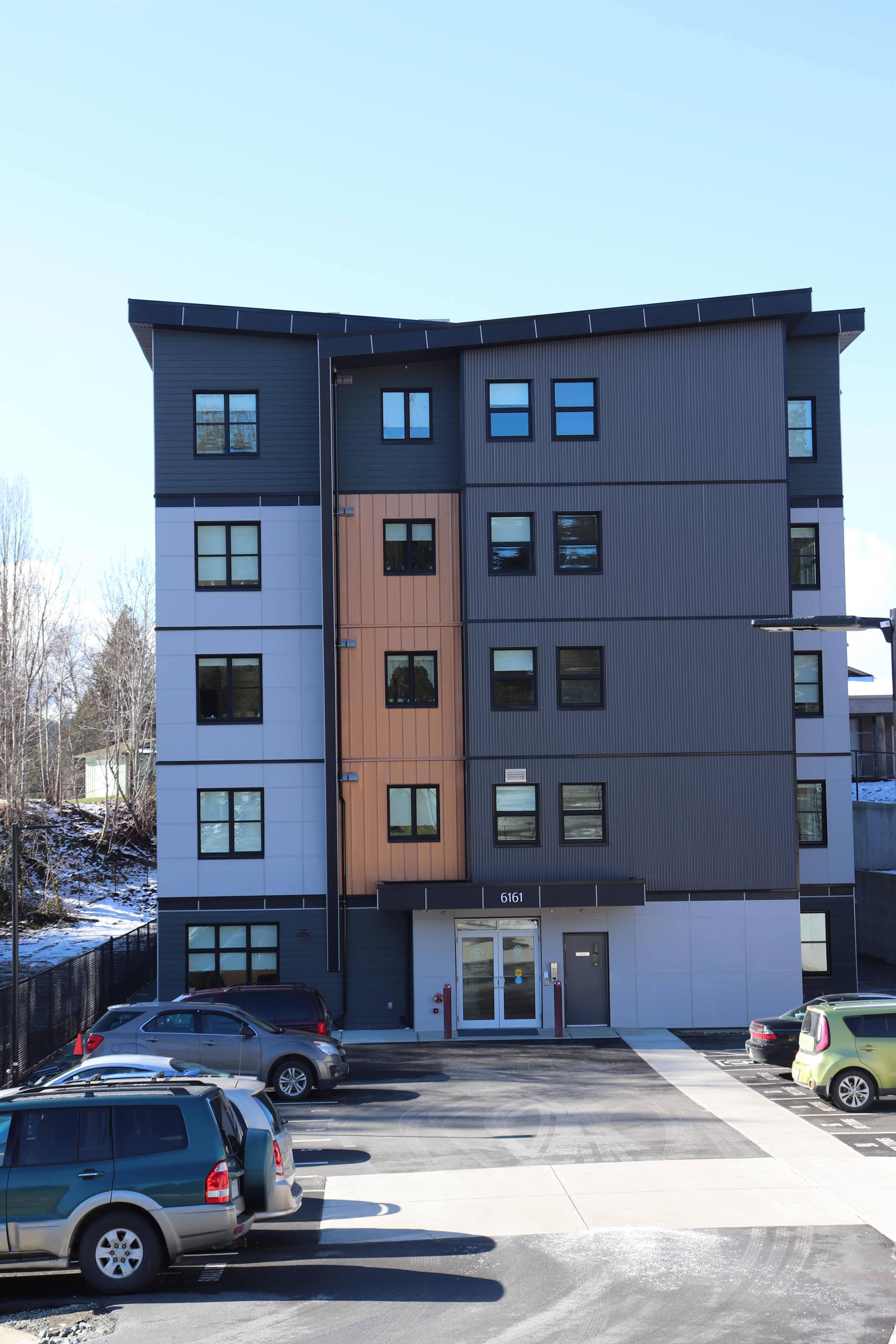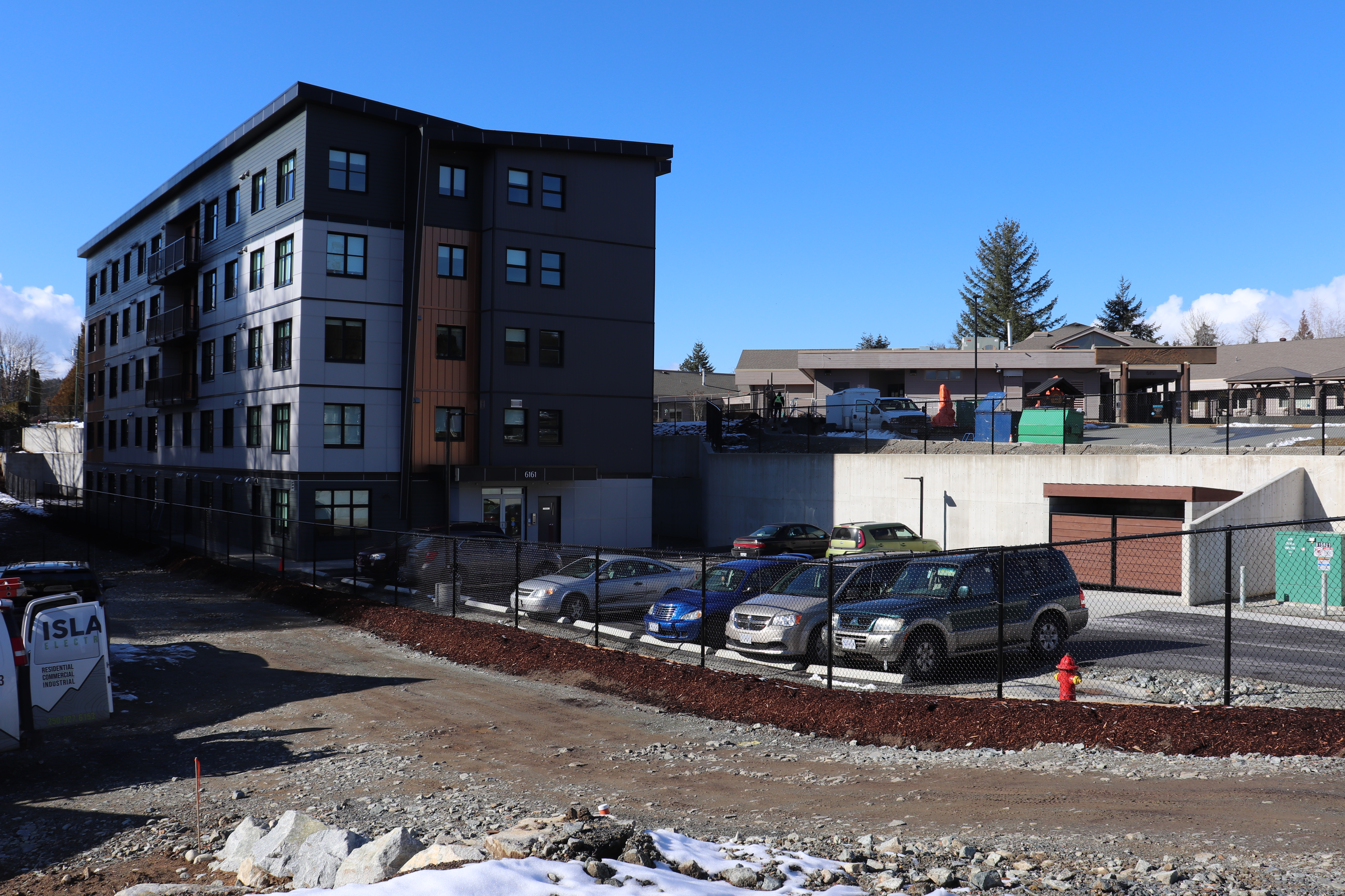 The five-story building is located on the southern side of Tsawaayuus Rainbow Gardens Campus of Care at 6161 Russell Pl., also the location of a complex care facility and another independent living apartment building.