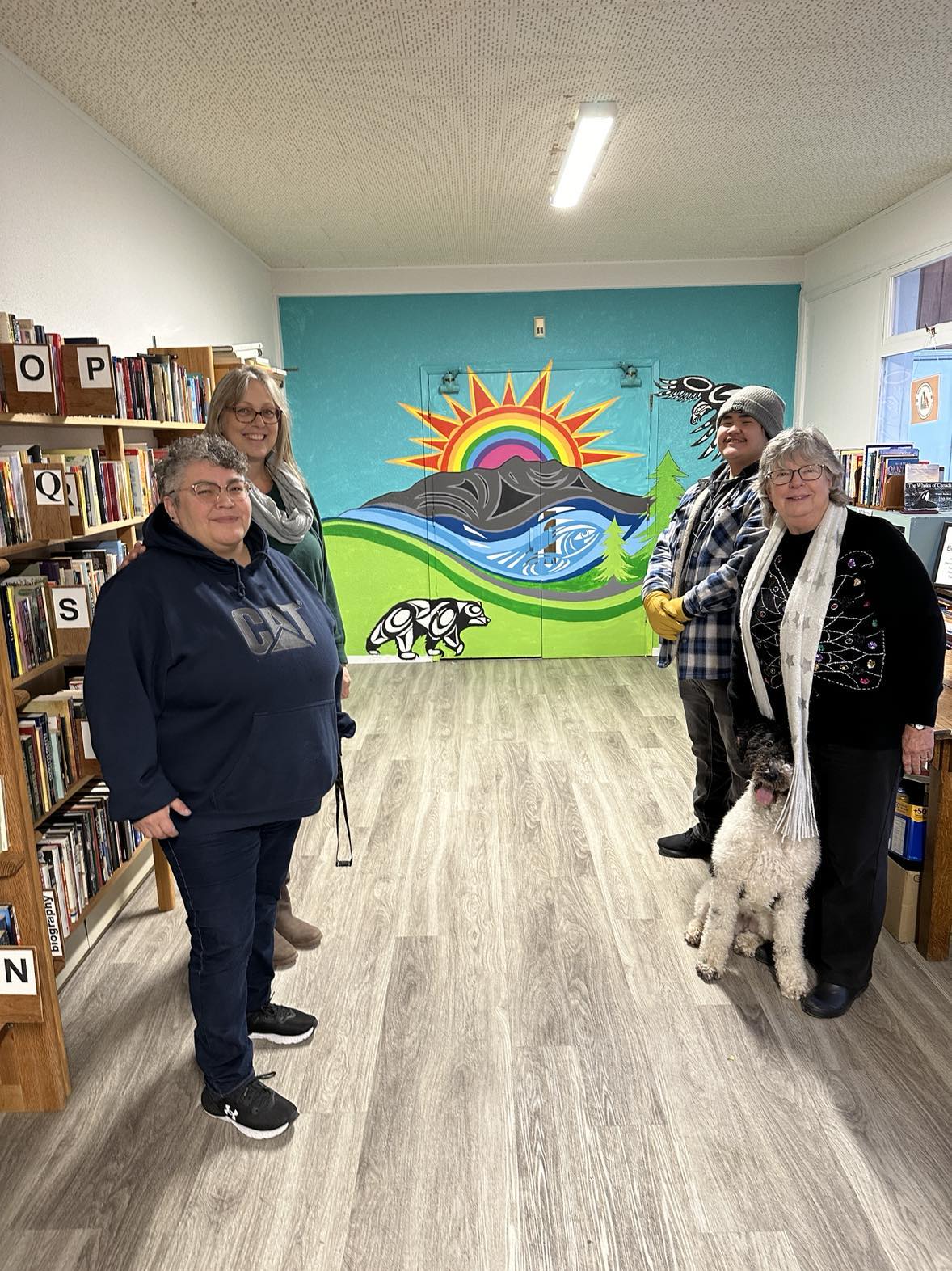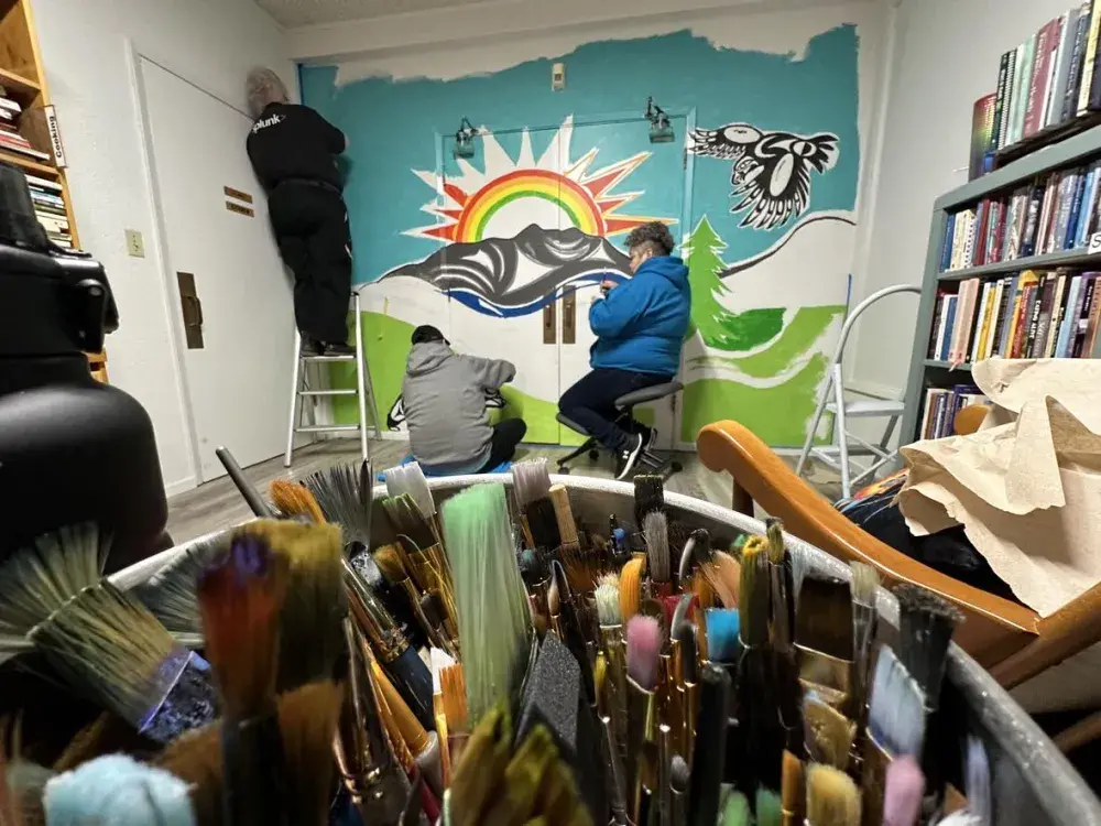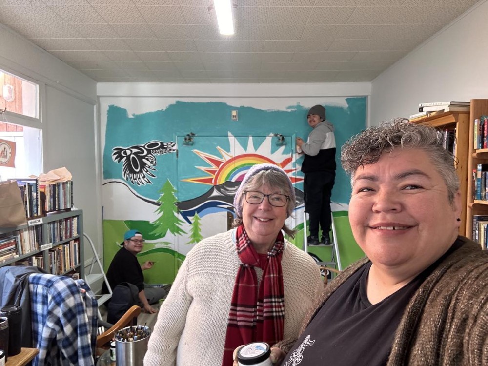 “I really wanted to put a design on this wall because our Nuu-chah-nulth people access space at United Church for AA or dance practice or social events, and I just wanted to give back to this community to honour our people,” said Geena.