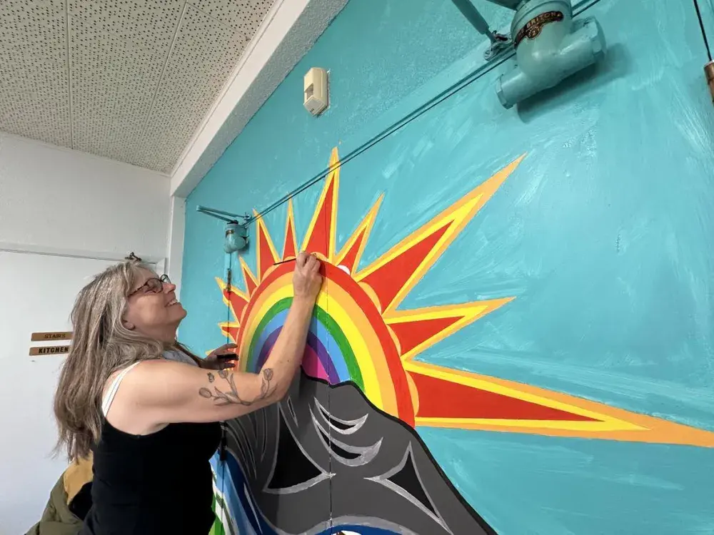 The new mural at the church features a rainbow, which Geena says symbolizes unity.