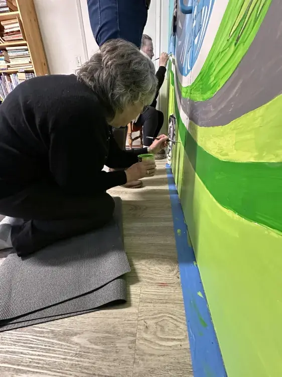 While Haiyupis gifted the mural, the church made a contribution to assist with paint supplies. Several people from the church community as well as Haiyupis’ friends and family assisted in the work.