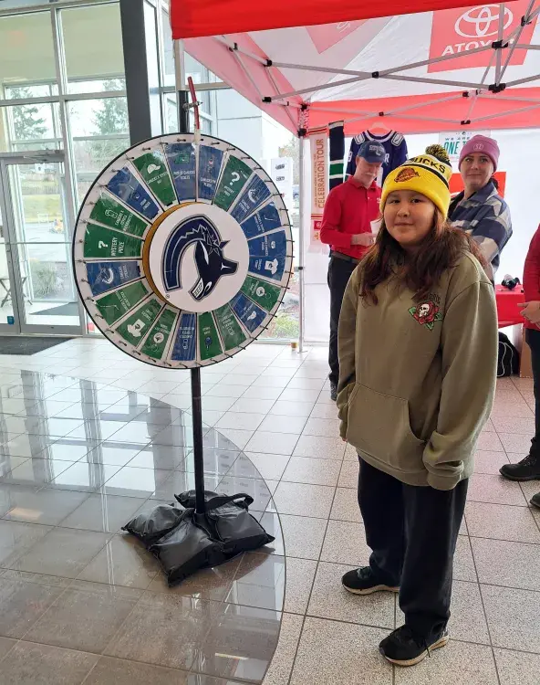 At the event fans and their families were treated to a hot dog barbeque by the Gyro Club and a myriad of prizes, from spinning of the big wheel for Toyota and Canucks merchandise, signed jerseys, games tickets, a game experience for two at the Champion Club suite and a chance to win a junior trainer experience.