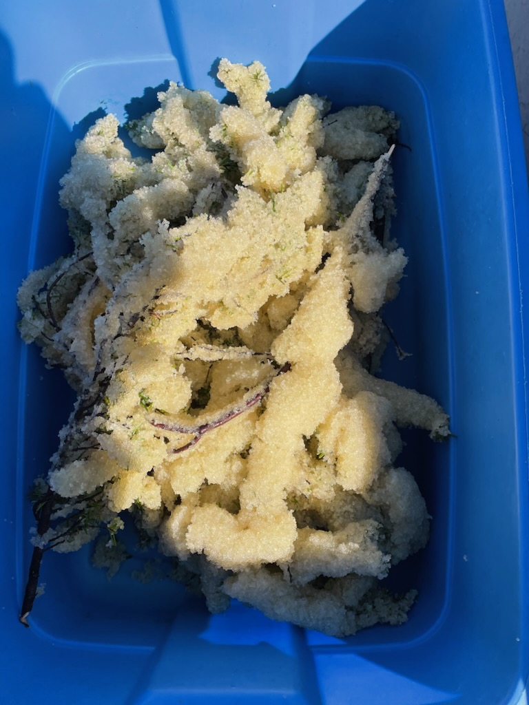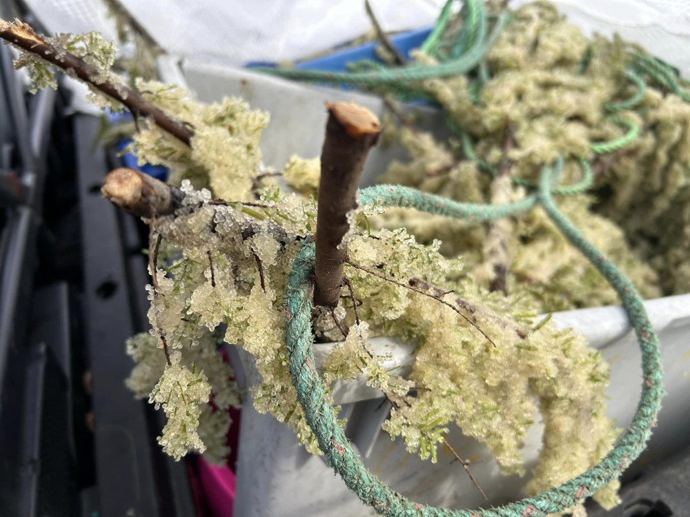 Ahousaht members living in urban areas were excited to receive k̓ʷaqmis on branches – a gift from their Ha’wiih and Maaqutusiis Hahoulthee Stewardship Society. It was the first time in years that they could eat this rare treat from their homelands.