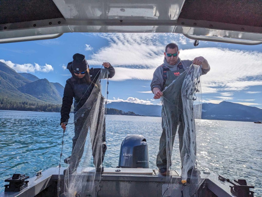 By the end of the weekend, Ignace reported that the herring had come closer to shore in Hesquiaht and the spawn had started. In another part of Hesquiaht Harbour, Steve and Karen Charleson joined by some of their family caught some herring and loaded up their smokehouse.