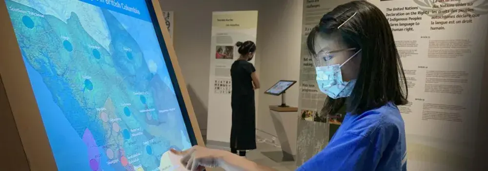First opened to the public in 2014, Our Living Languages is an interactive gallery that allows the visitor to hear fluent speakers over headphones. Its content relies on the important work of digitizing old recordings of B.C.’s Indigenous people speaking their languages. Work that continues to this day, thanks to generous contributions of donors.