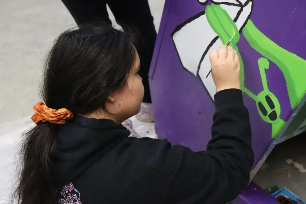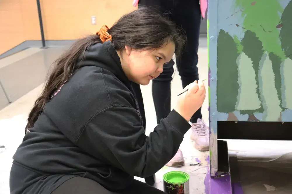 Every day, over the last few weeks Coda Johnson of Huu-ay-aht and Rose Tatoosh of Hupacasath have been painting a trash bin with their signature artwork that will soon make its way into the Port Alberni community.
