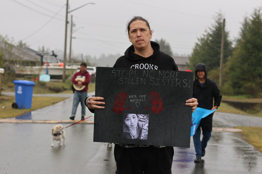 Ucluelet First Nation’s Dyllon Peter walked with the women and girls in Hitacu to honour his aunt Rose Paul who was brutally murdered by her boyfriend in 2015.