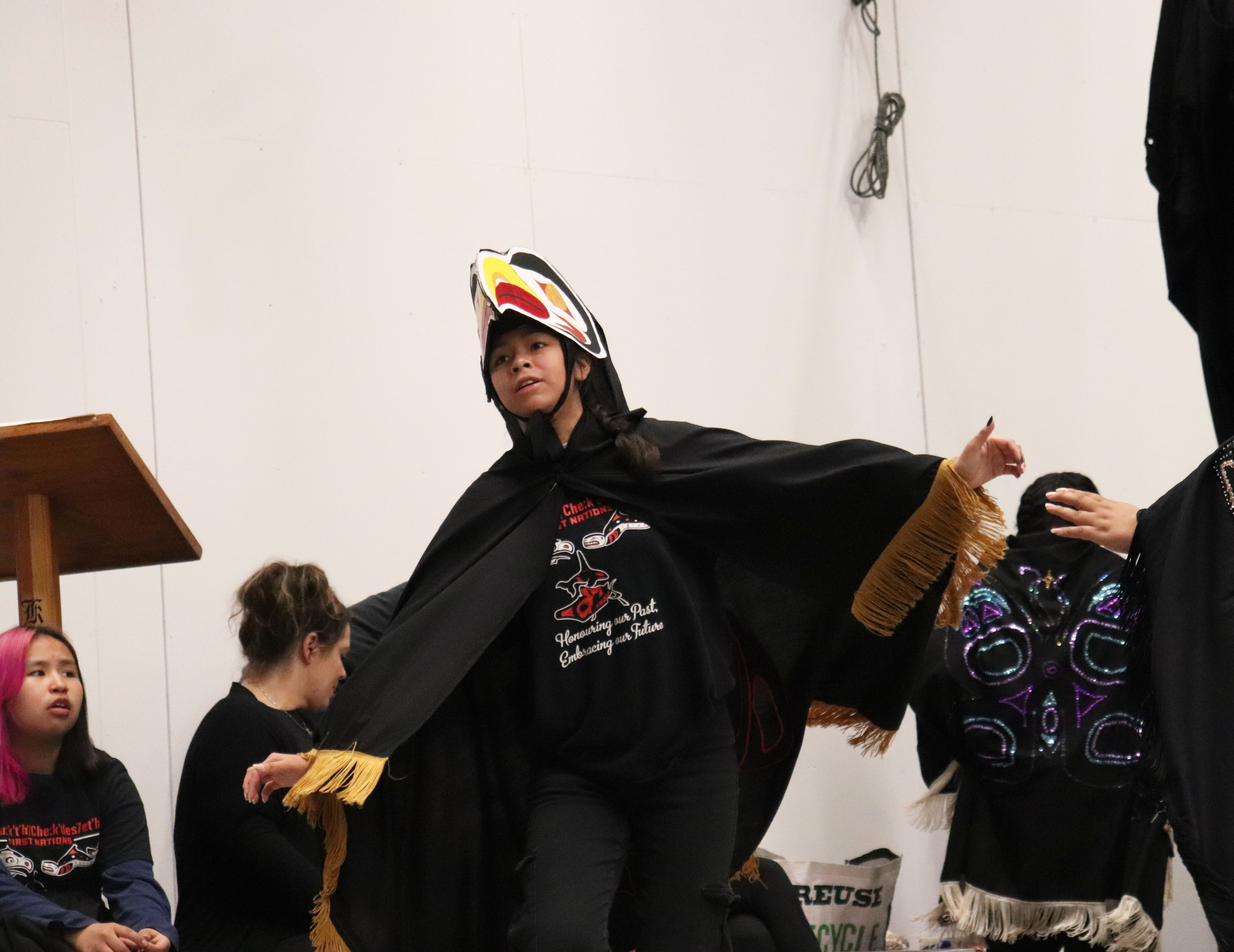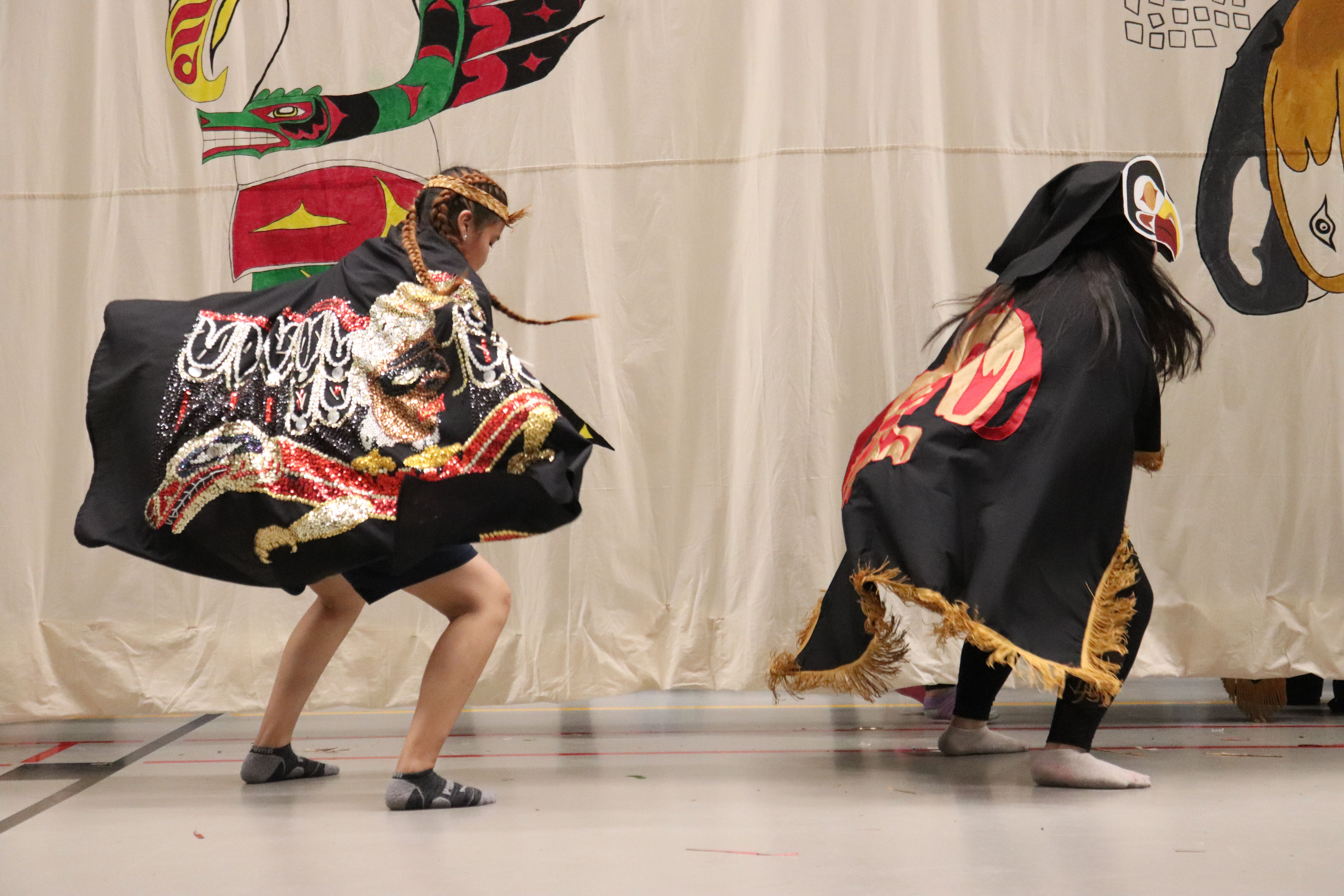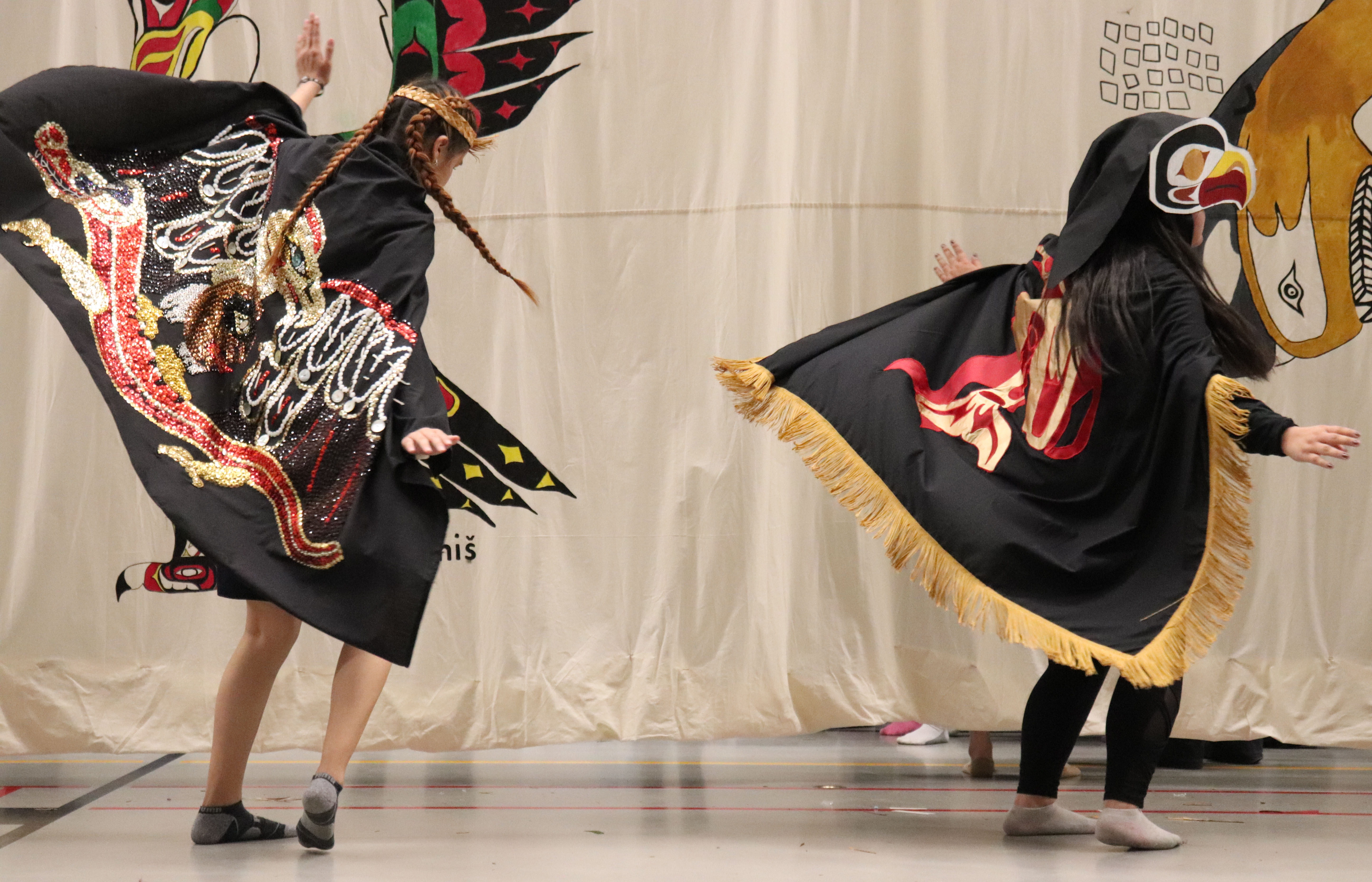 During the eagle dance some of Hanson’s students surprised her, taking to the floor joining the lead dancers. There was not a dry eye for Jennifer Hanson, director of education for Ka:’yu:’k’t’h’/ Che:k’tles7et’h’ and Daisy Hanson as they witnessed the students perform.