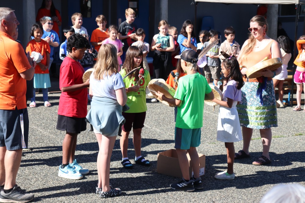 June 21 began with recognition of Indigenous Peoples Day in local schools. At E.J. Dunn students and faculty gathered in a circle to recognize their place in Hupacasath and Tseshaht territory. With orange shirts glowing in the morning sun, a small lead circle was formed inside the larger one for a group of students and staff to sing našukʔaƛin, School District 70’s song that was gifted by Tseshaht member Aaron Watts. All appeared to know the words, joining in while clapping to the beat.
