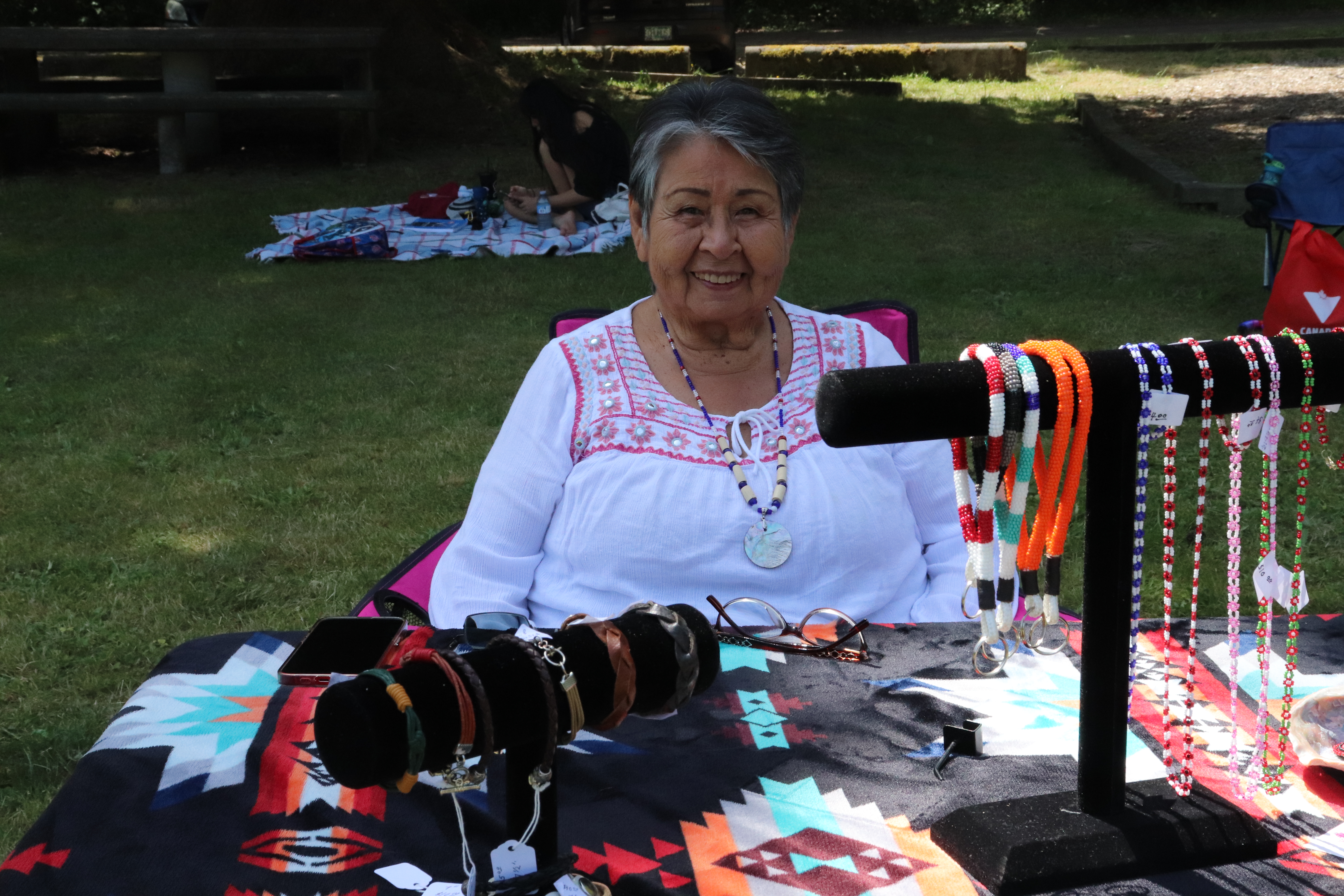 By midday the Tseshaht First Nation held a gathering on the reserve side of Paper Mill Dam Park. Vendors lined the park with beautiful treasures to be bought, while the House of Regalia held a loonie toonie draw to raise money for Port Alberni street workers.