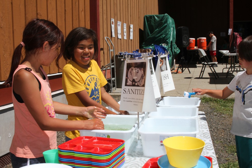 For the 2024 gathering a focus was put on minimizing waste. Participants brought drinking vessels to fill up with Kyuquot’s clean drinking water, rather than relying on plastic bottles, and eating trays were reused after being cleaned at a dish-washing station. That too sparked a competition, and on the Saturday of the event children could be seen hunting around for unwashed plates, the two stacks at the end of the washing station serving as a running tally.