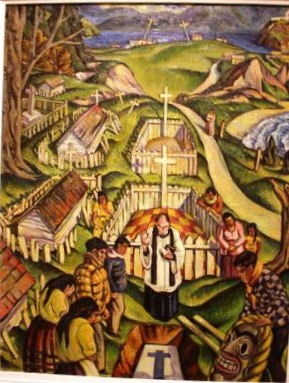 He supplemented his teacher’s salary with art sales, starting with the 1937 painting called Indian Burial, which shows a Yuquot burial scene, the subjects dressed in contemporary clothing.