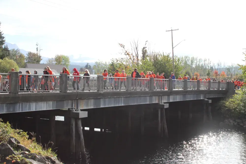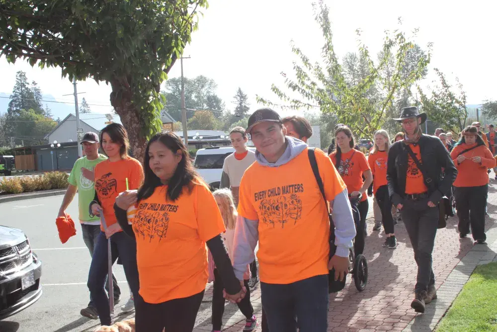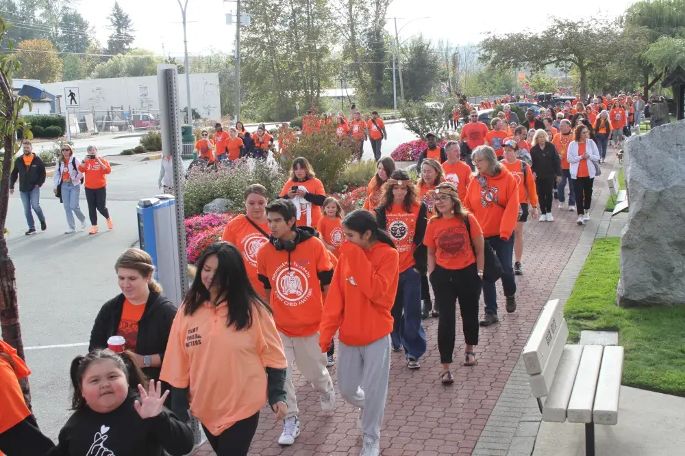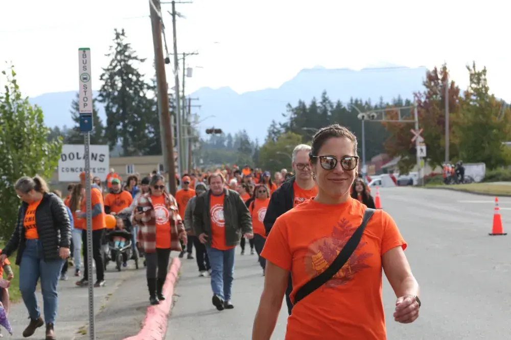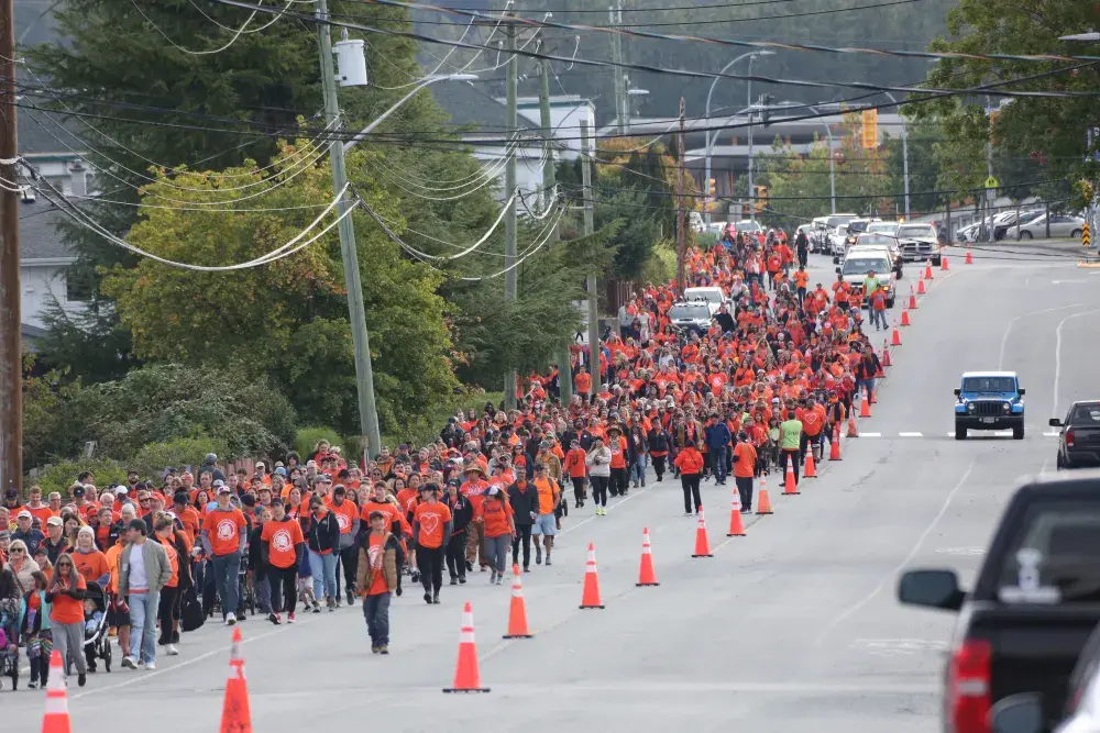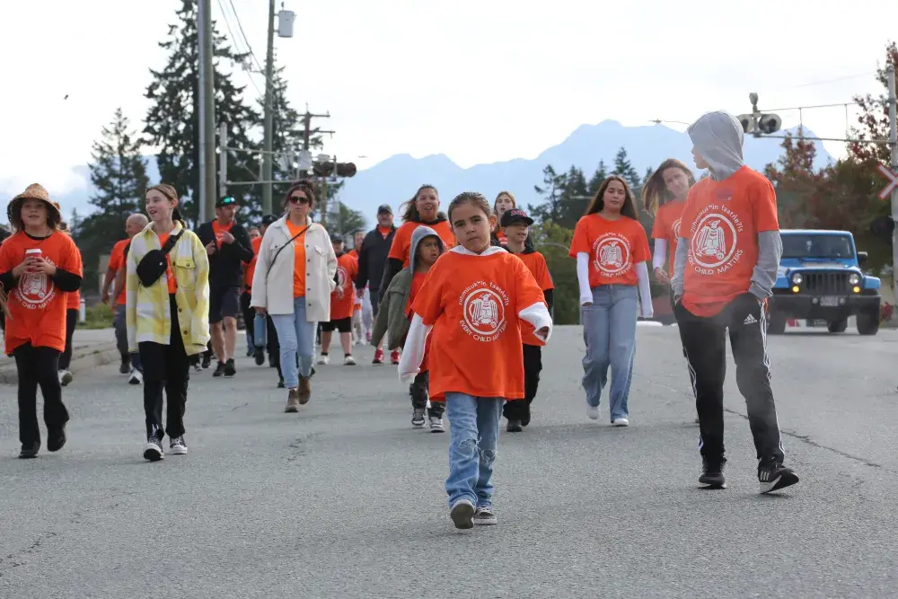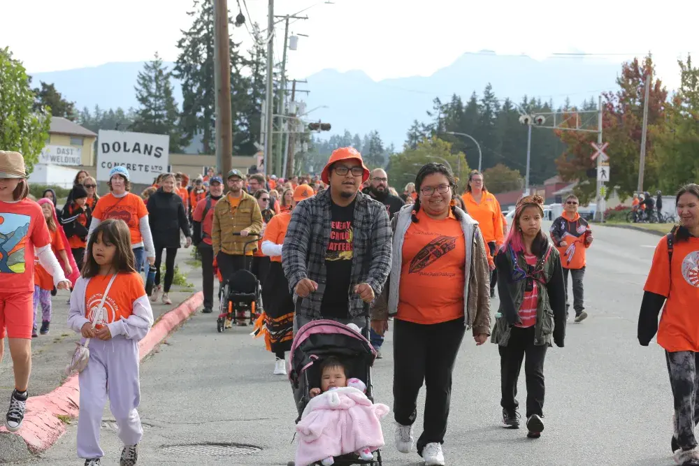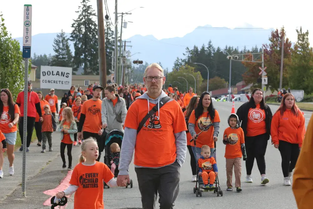 Hundreds filled the streets of Port Alberni with orange for the Sept. 30 event, recognizing those who attended residential schools for over a century as the Dominion of Canada developed. The march started at Alberni District Secondary School at 10 a.m., progressing down Roger Street to the Victoria Quay, then extending along the Somass River to cross over to the Tseshaht First Nation community, where the Alberni Indian Residential School operated until 1973.