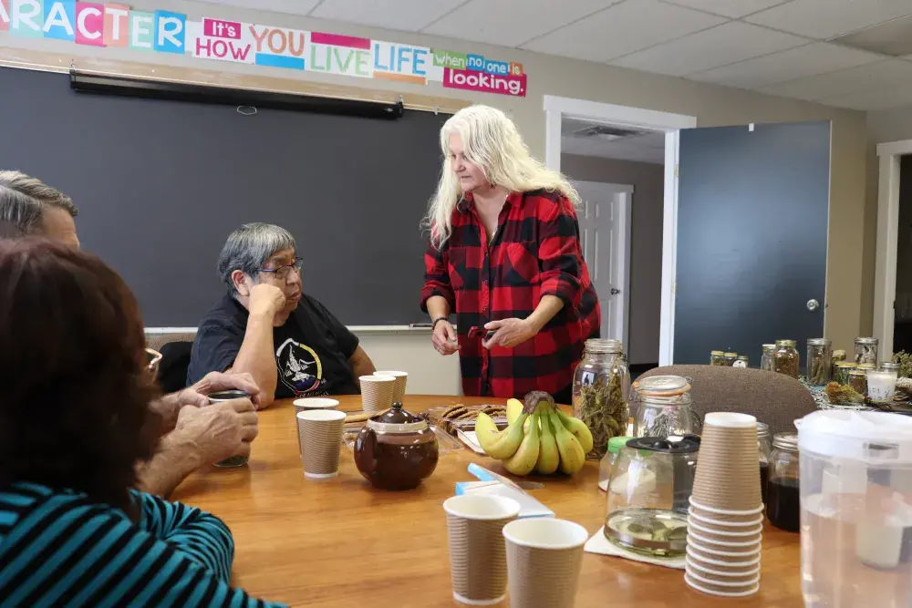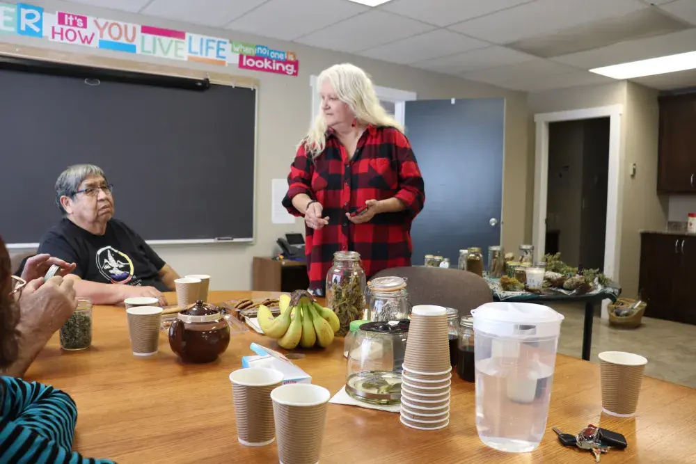 Surrounded by mason jars of dried leaves, roots, flowers and other concoctions, Leonew invited the elders to learn about each plant and what it is used for at a PAFC event held Oct. 21 at their Wellness Centre on 4th Avenue.