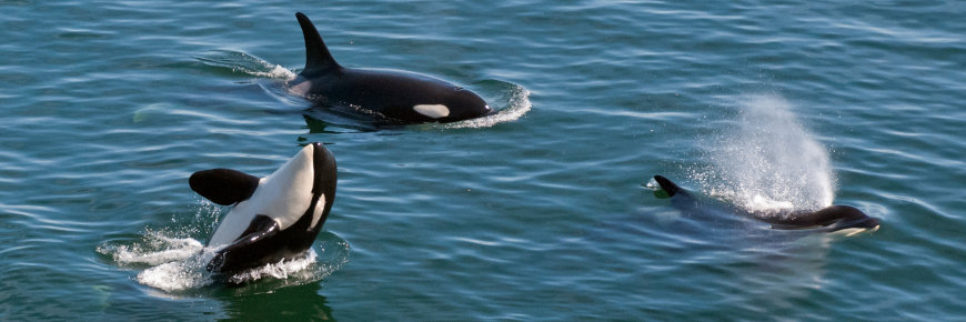 The species consists of three family pods, each organized around the mothers. They range from central California to southeast Alaska. However, the core portion of their range centers on the coastal waters of southern Vancouver Island and Washington State and the inland waters of the Salish Sea.