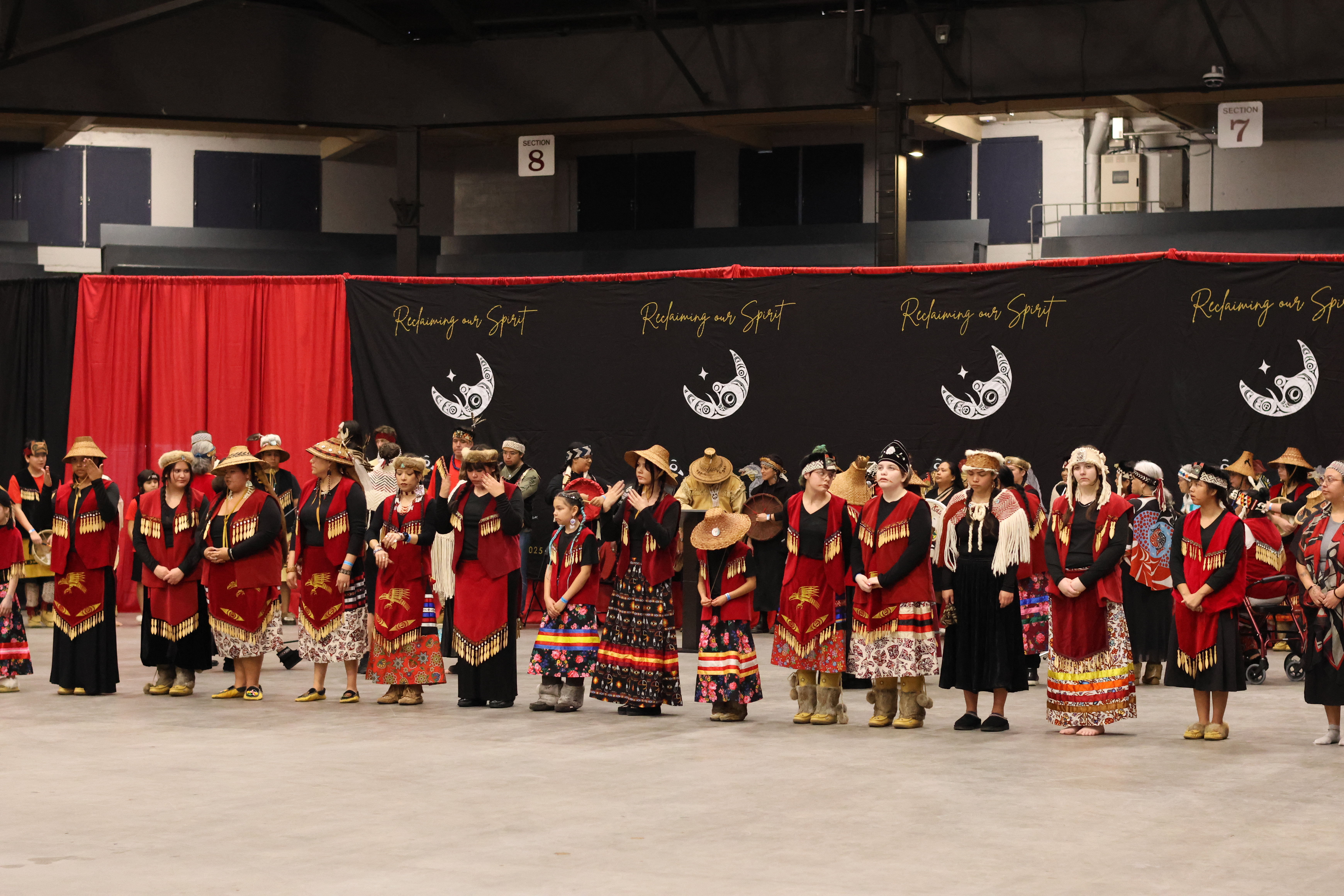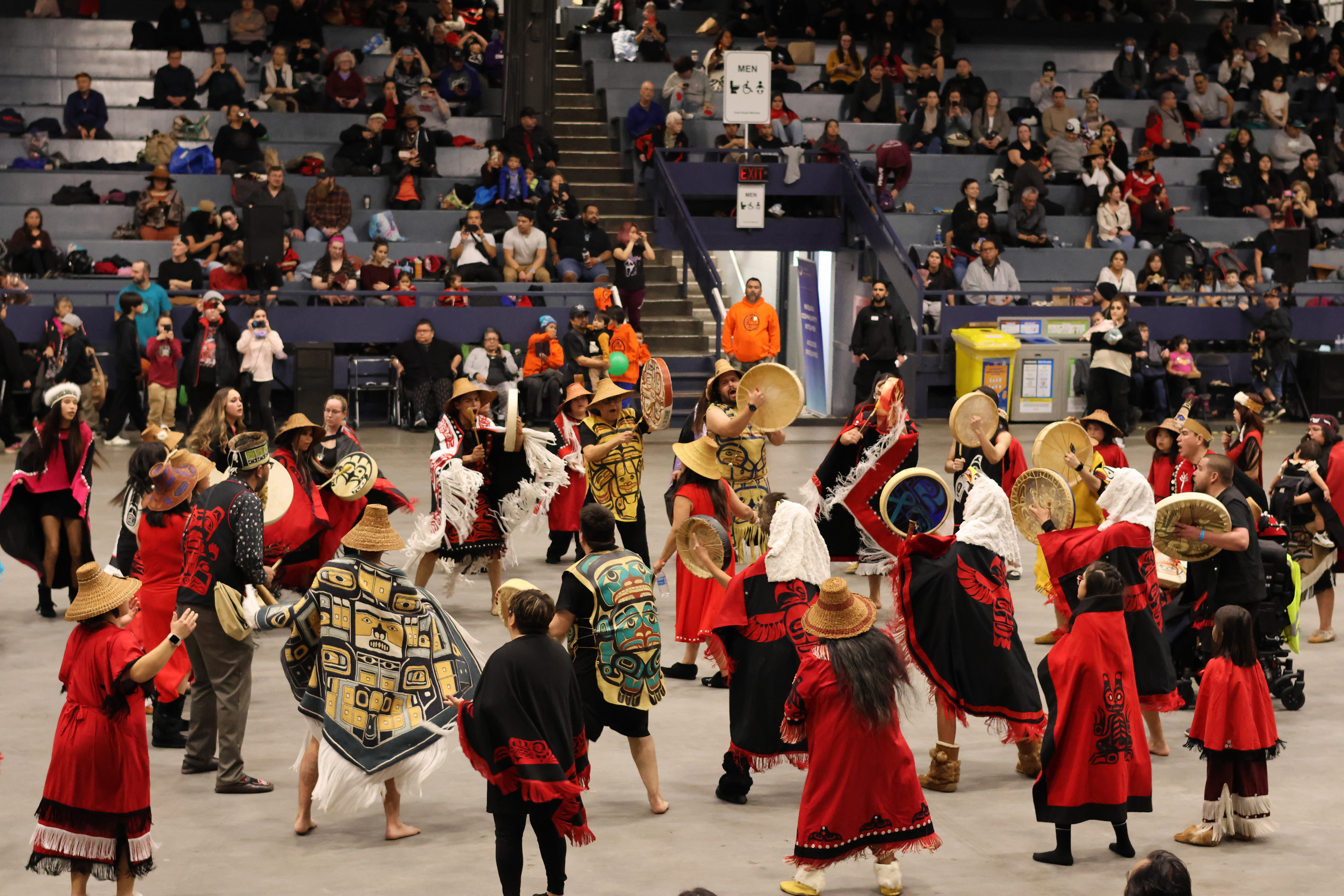 Like a fog horn guiding ships through ocean waves, the deep sound of a conch shell called dancers to the floor as the slow, steady beat of a drum group reverberated off Vancouver’s PNE Forum walls.