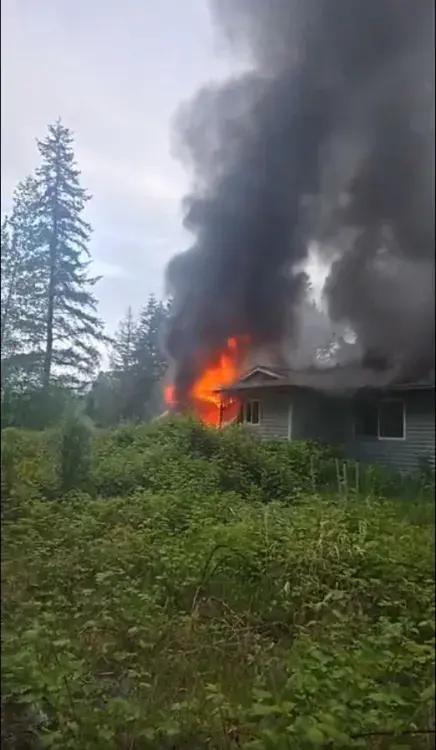 “We found pressurized smoke pushing out the front door of the house and some heavy fire that was more towards the rear of the building,” said Port Alberni Fire Chief Mike Owens. “Fire crews initially attacked that from the exterior of the building and made it safe to transition into an interior attack at that point.”