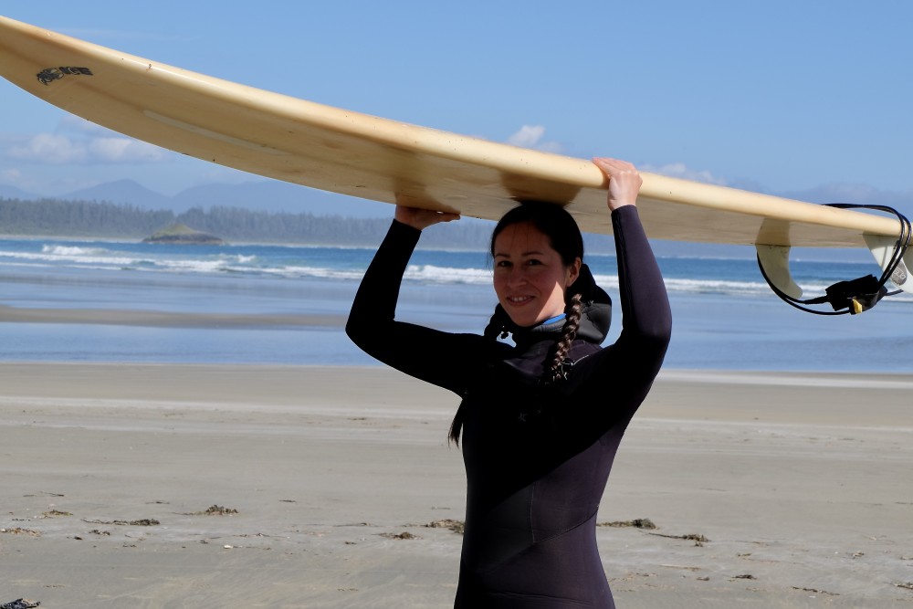 “It’s really hard to learn Nuu-chah-nulth, but it can be done. Surfing is really fun because we get to do party waves. That’s the most fun,” said Emelia, who is Hale’s daughter and of Nuu-chah-nulth and Metis heritage.