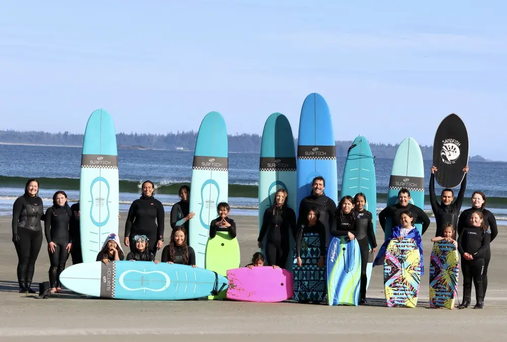 There are 16 youth registered in the program this year, three support workers, six surf instructors that rotate throughout the season and Tla-o-qui-aht language revitalization support worker Tsimka Martin has also joined the team.