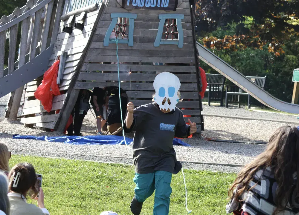 “KA-BOOM!” Joe exclaimed as the children ran around the mock Tonquin ship with sparklers. “Sparks flew and Nookmis got thrown overboard.”