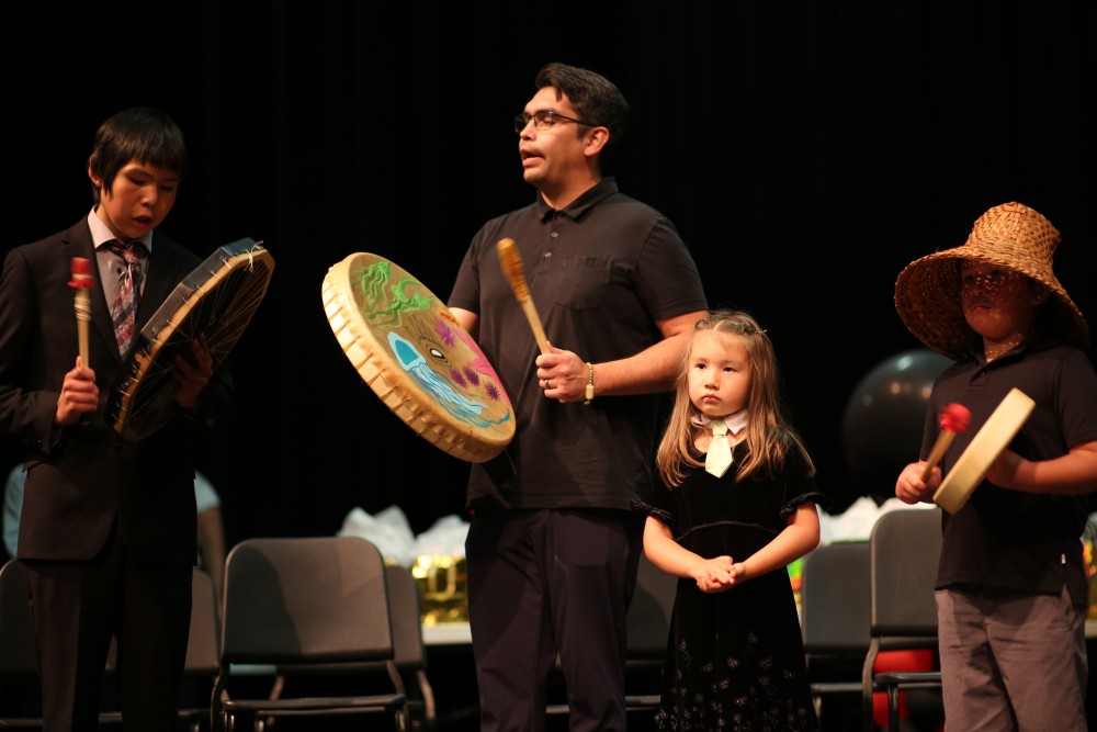 To start proceedings on each of those days Rampanen performed the Equality Song on the stage with a group of students, a piece that he explained was composed by Patrick Aleck during the COVID-19 pandemic. While Nuu-chah-nulth people were prevented from gathering, Aleck created the song as a piece belonging to everyone, including non-Indigenous people.
