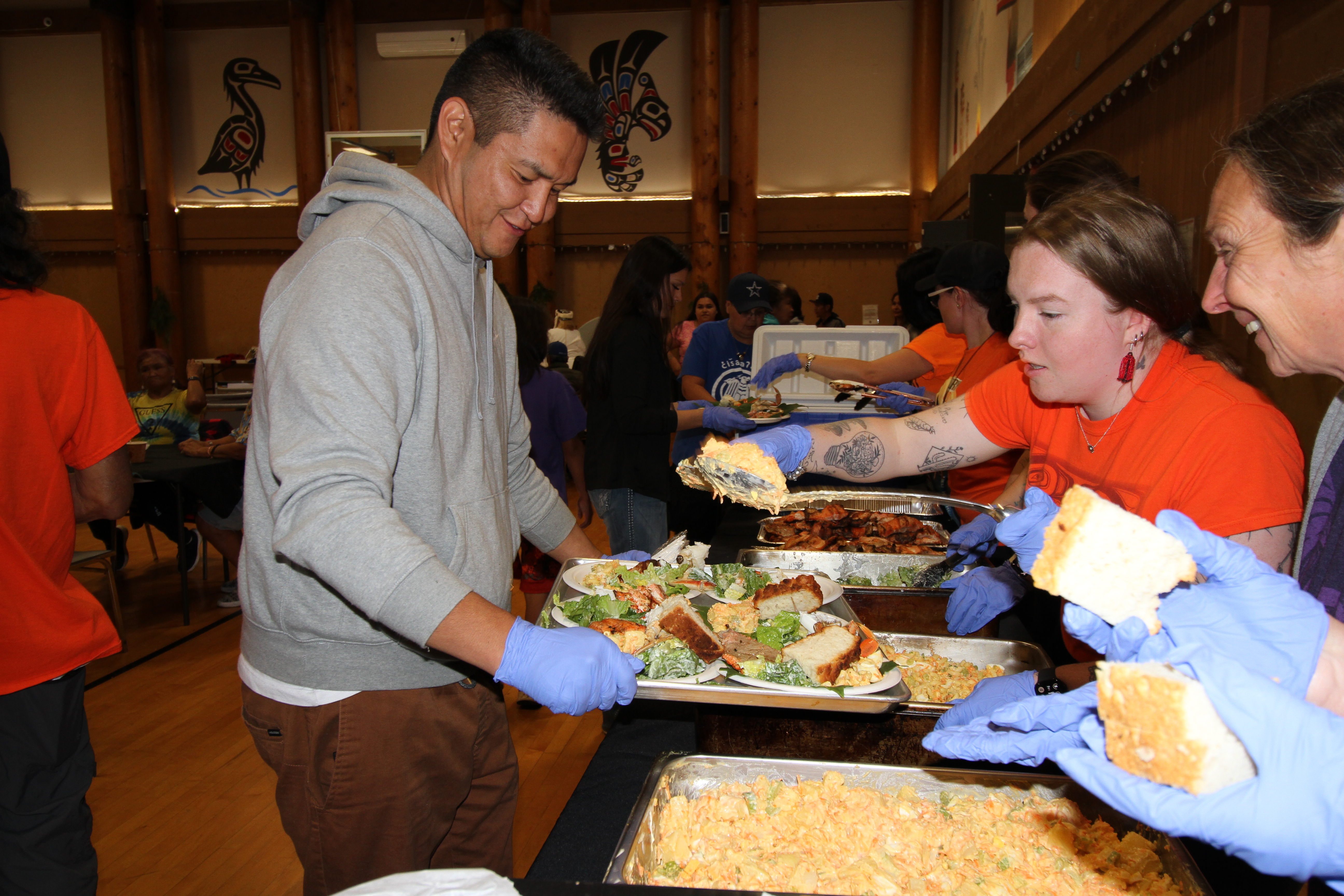 A lunch-time seafood feast was held at the Port Alberni Friendship Center on June 20, a lively event featuring a rock band and face painting for children. Before the meal representatives from the local Tseshaht and Hupacasath First Nations addressed the crowd, noting the difficult history with its Indigenous people that the Port Alberni community is still working to overcome.
