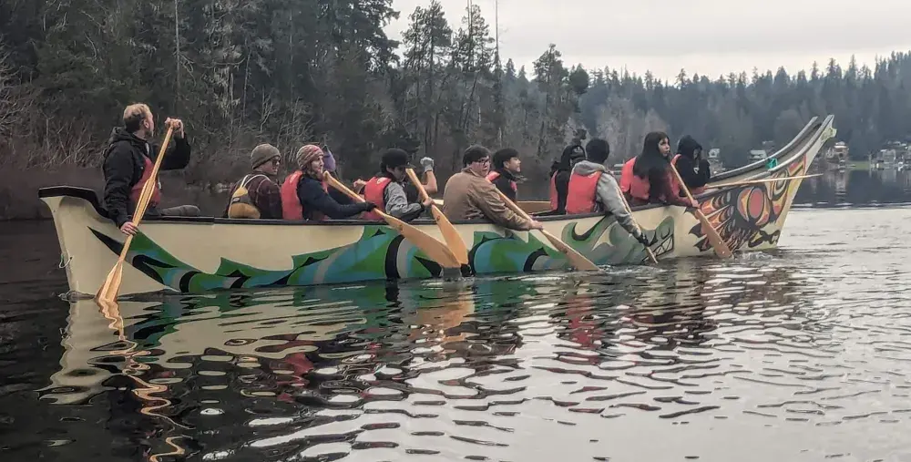 The students practiced ‘isaak’, which means respect, by chopping and delivering wood to elders to keep them warm. Overnight canoe journeys taught them tidal predictions, and many finished the course with Paddle Canada Level 1 canoeing certification.