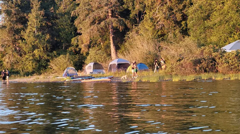 During the Canada Day long weekend, Ucluelet resident Awilda Sanchez witnessed a group of about 15 people set-up a canopy and five tents at a section of beach near the Kennedy Lake Park boat launch. She says they likely camped in the same spot for two nights; The area is clearly marked with signage that says it’s for day-use only and that overnight camping is not permitted.