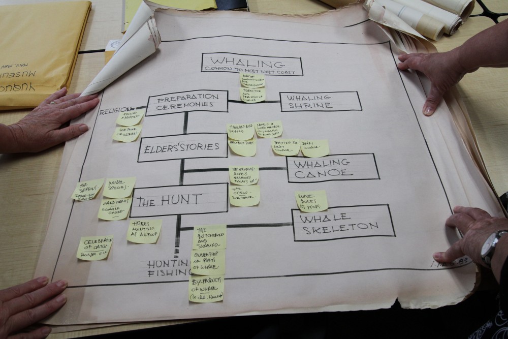 In June the daughters of Jean Jaques Andre, Yvette Andre and Bianca Message, delivered their late father’s plans to the Nuu-chah-nulth Tribal Council’s main office in Port Alberni. During the visit NTC Executive Director Florence Wylie unrolled the documents with Yvette and Bianca, which detail a proposed facility featuring a 12,500 square-foot exhibit area, plus a restaurant, gift shop, theatre, library, elders’ lounge and children’s area. The cultural centre plans are the product of Andre’s meetings with Nuu-chah-nulth elders and communities in the early 1980s. Applications were underway for federal funding, but the project was never realized as an agreement couldn’t be reached on where the facility would be.