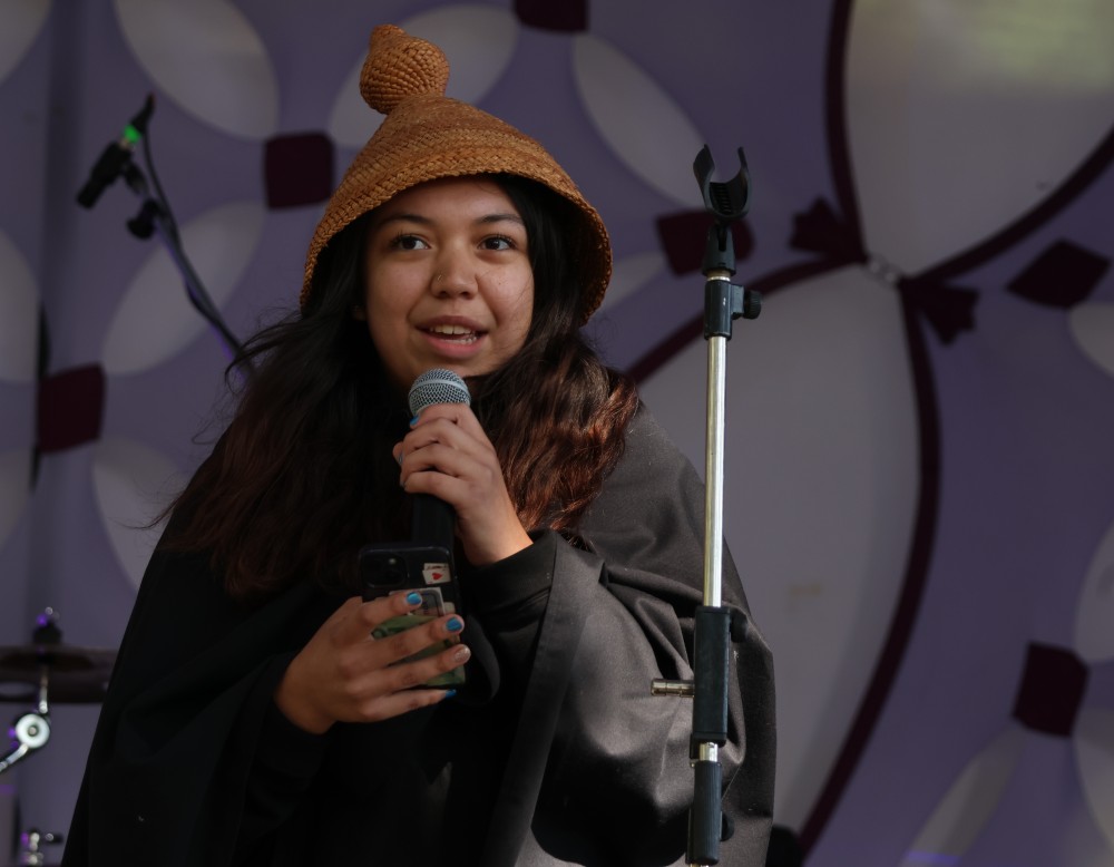 Qiic Qiica, a cultural interpreter for Kiixin Tours (HFN’s ancient village site) and speaker for the nation, spoke about resilience. He said his ancestors had to “fight and die for the land they live on” and endured tsunamis, famine, colonization and disease.