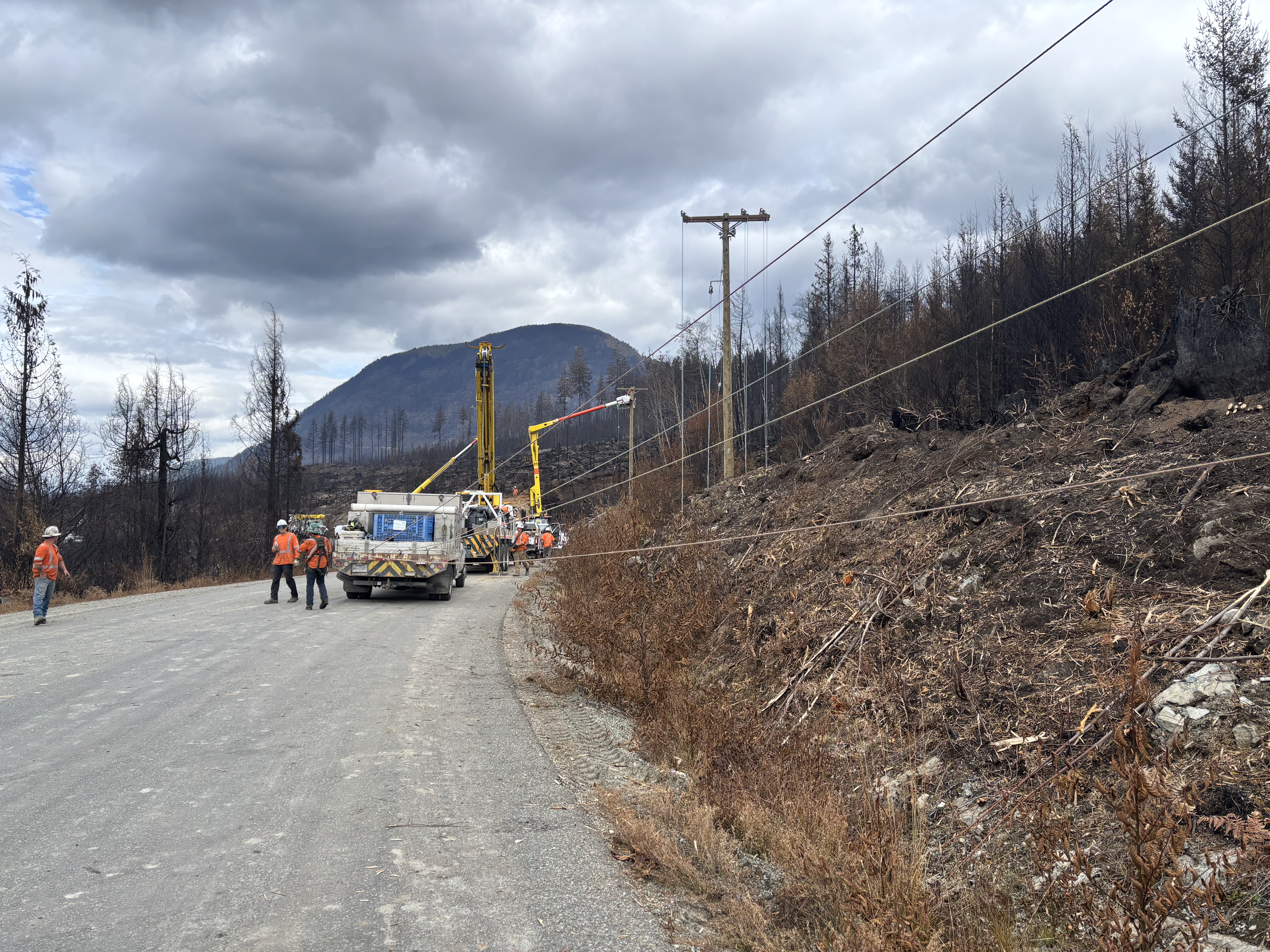 “As of today, a growing team of restoration personnel is on site, including line technicians, vegetation management crews and equipment operators,” stated the provincial utility provider on Aug. 19. “Meanwhile, detailed plans have been submitted to begin work in the section of the corridor that traverses steep forested cliffs and unstable rock – an area currently restricted due to safety concerns. BC Hydro will commence operations in that zone as clearance is granted by the BC Wildfire Service.”