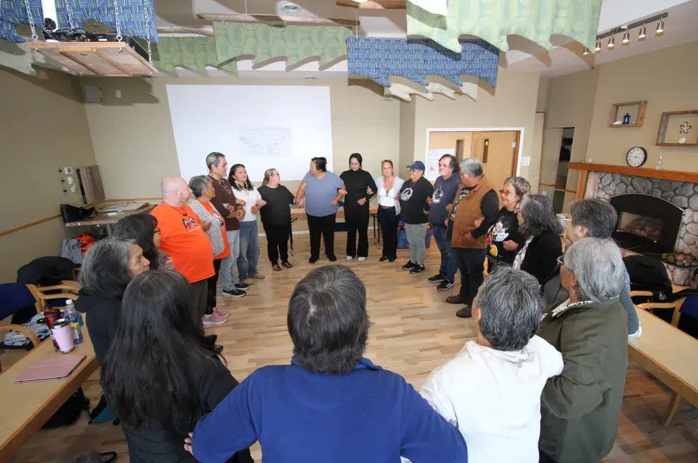 On Oct. 17 a large group of elders finished a three-day workshop in Campbell River to help prepare them to support NETP programs. This was the third such workshop given to elders, which emphasized the need for them to take care of themselves first so that they can better support others. Many of the participants came away with an enhanced awareness of their own childhood trauma – including from residential school. They also howled through a laughing yoga session led by Lisa Watts, and explored diabetes issues and good eating habits over the three days.