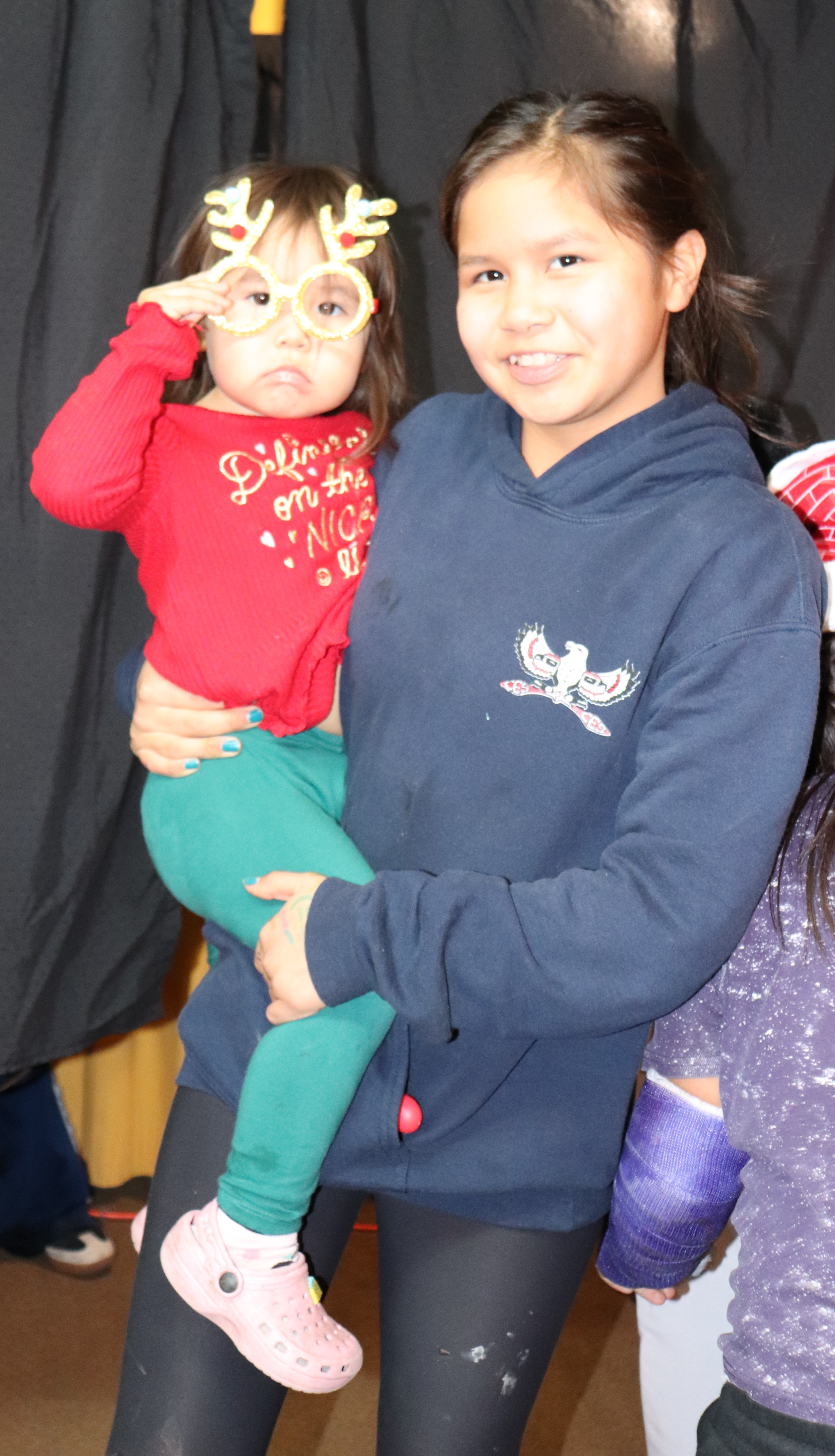 Families were invited to come to the photo booth for fun holiday photos. There were also tables set up offering activities like coloring, cedar weaving and henna designs.