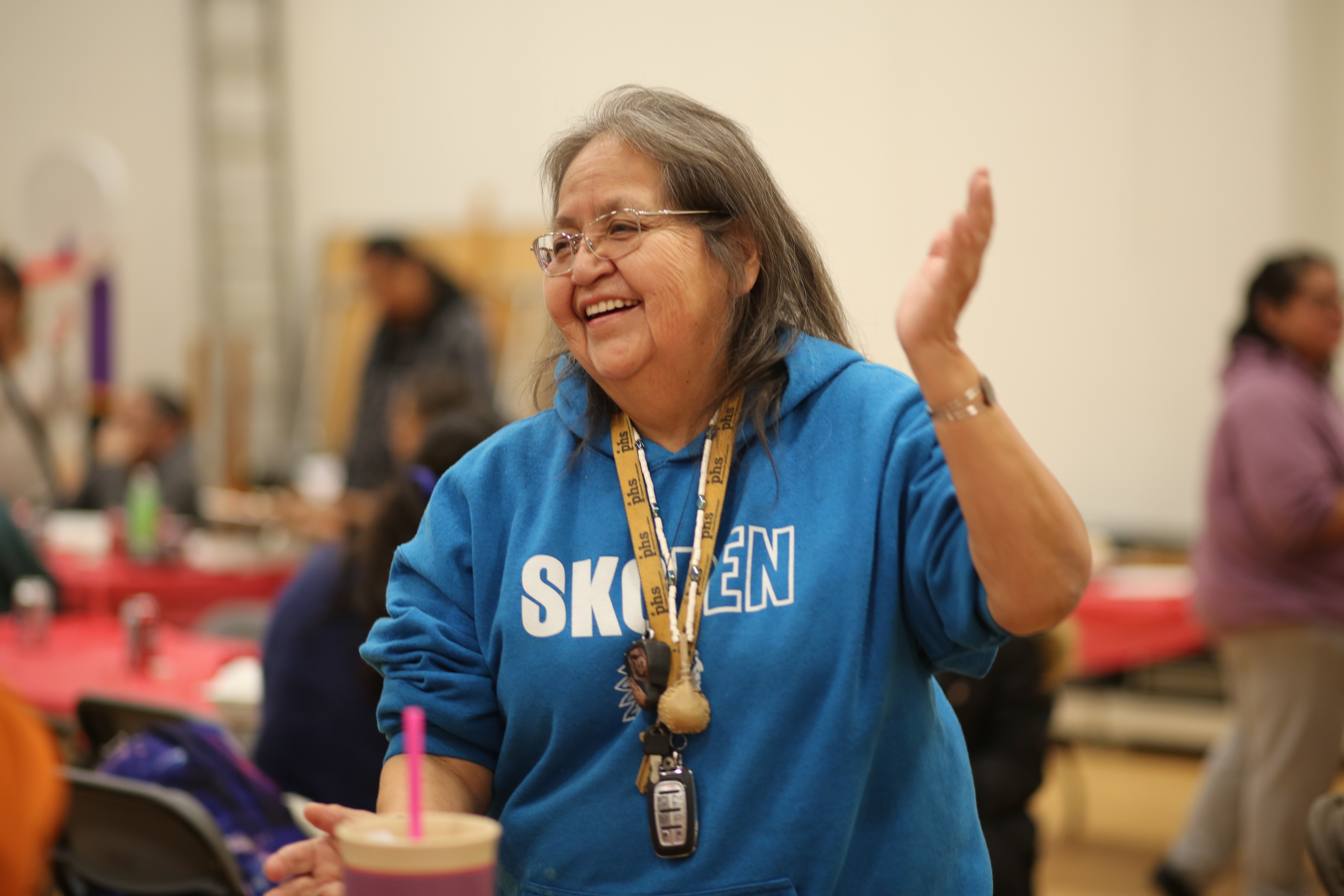 Multiple other songs filled the massive room on Vancouver’s Alexander Street, plus other activities for young and old like a photo booth, henna painted tattoos, a table for traditional cedar weaving and a “laughing yoga” session led by Lisa Watts. A table was also present from the First Nations Health Authority offering an array of program information.