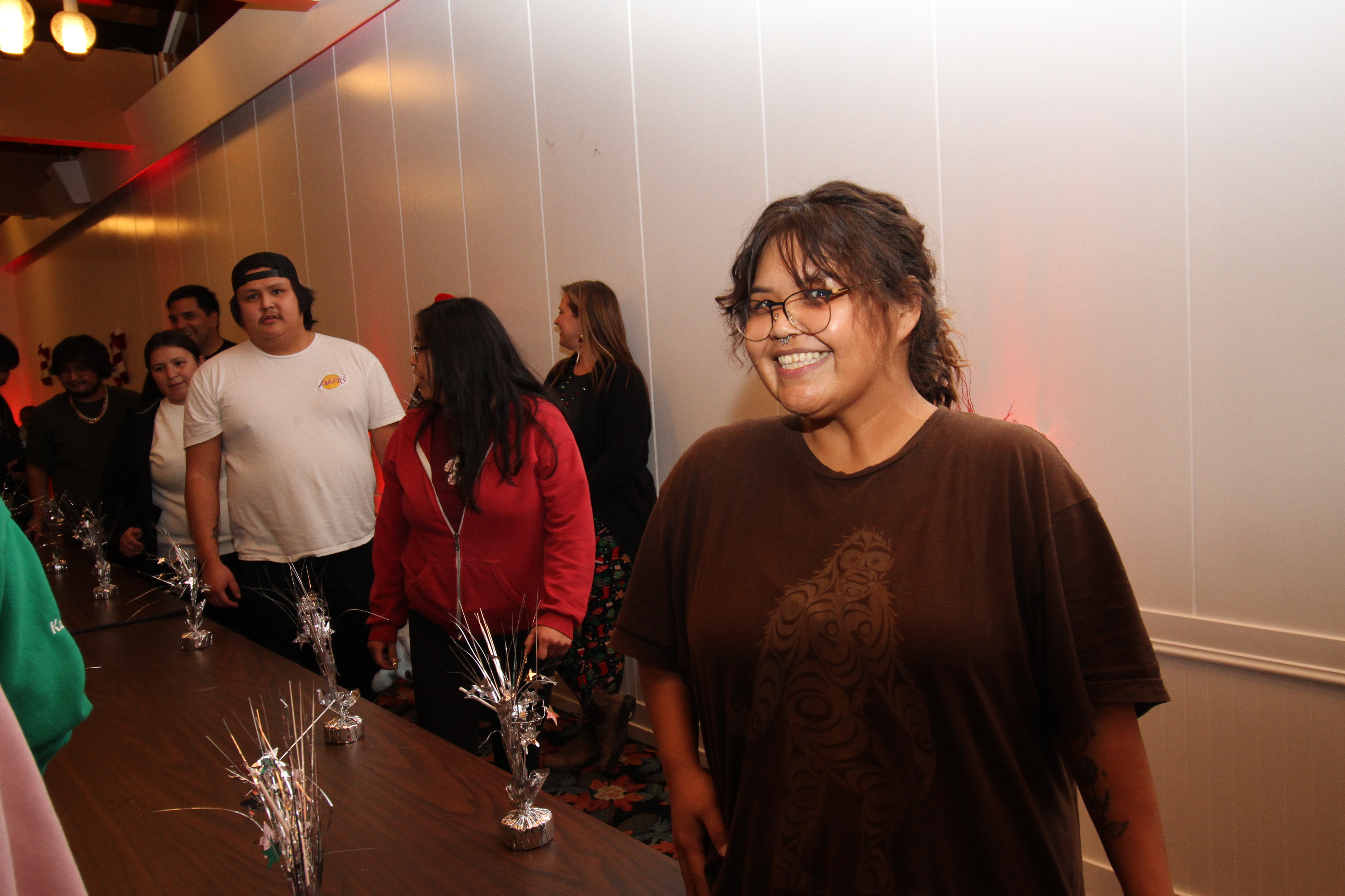 At least 220 came to fill the venue wall to wall on Dec. 10, the fourth of five such Urban Gatherings being hosted this month by the Nuu-chah-nulth Tribal Council. Besides the Christmas dinner and a chance to reconnect with family, participants were treated to door prizes, singing, cedar weaving, a photo booth, painted henna designs and a table for holiday crafts. Those interested in learning about their family history even had a chance to sit down and work on family trees through a project underway from Usma Nuu-chah-nulth Family and Child Services.