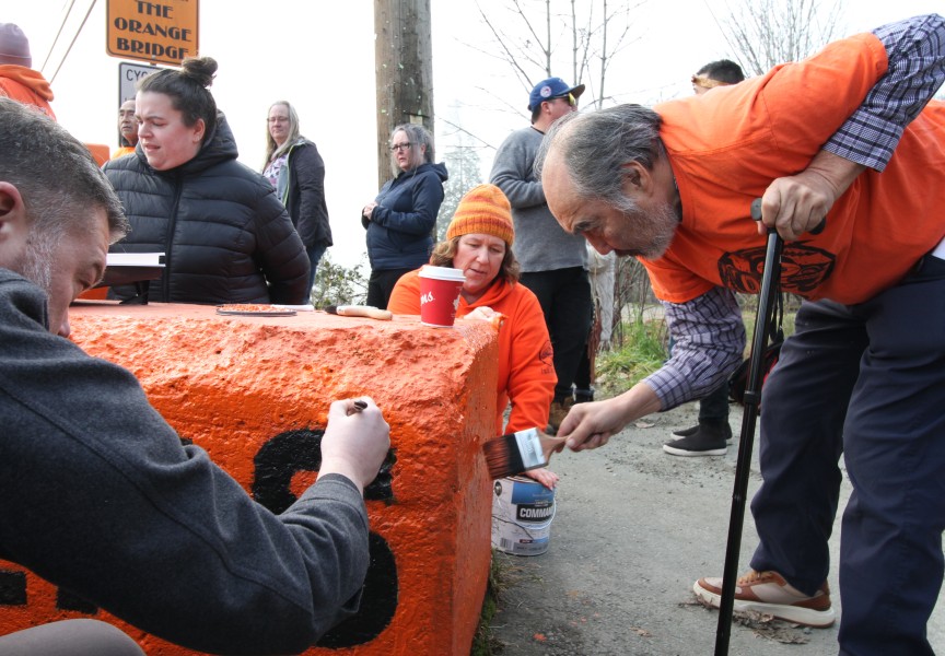In 2022 the Tseshaht First Nation in partnership with the Ministry of Transportation and Transit painted barricades on each end of the Somass River Bridge orange, a color that has come to represent residential school survivors. Barricades on each end of the bridge were painted with the slogan ‘Every Child Matters’.