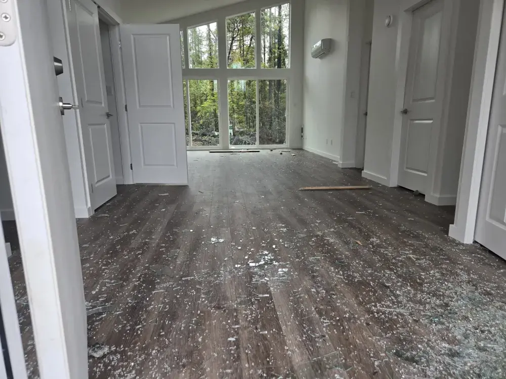 Photos shared on social media by Yuułuʔiłʔatḥ Government (YG) show smashed windows, doors knocked in and fire damage to a stove and microwave.